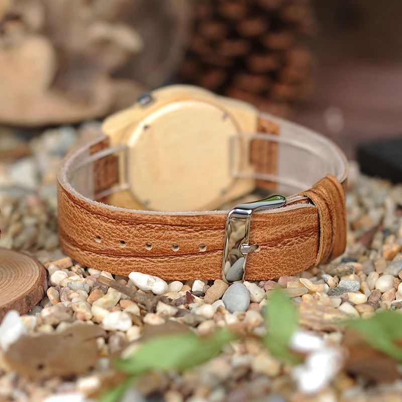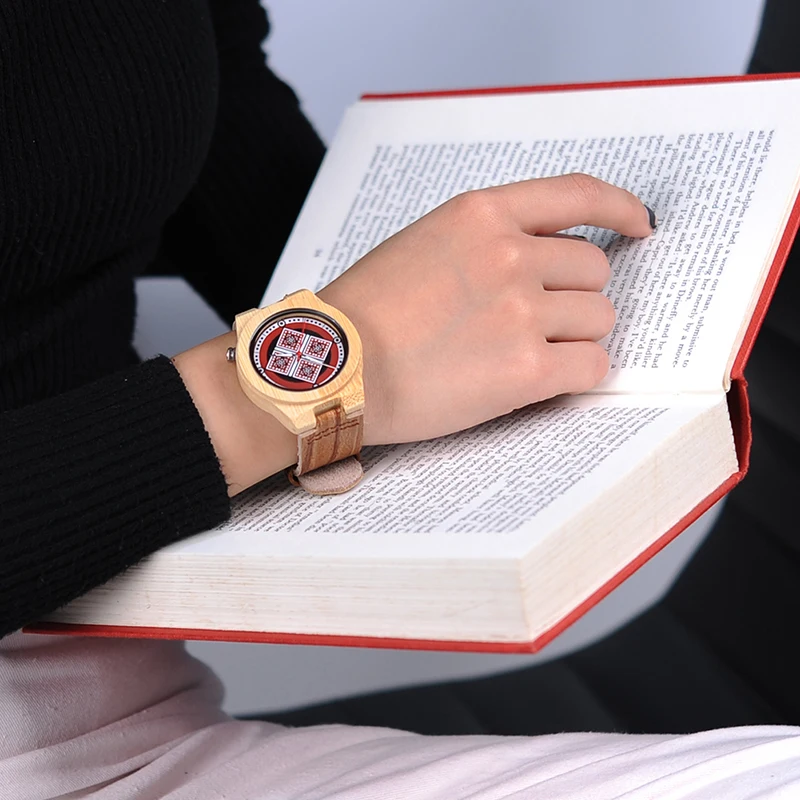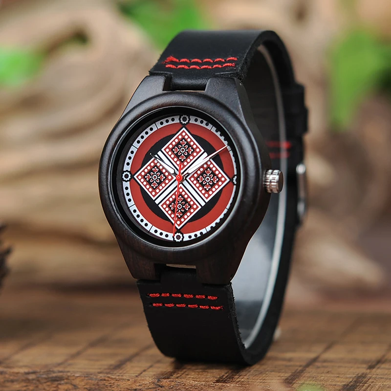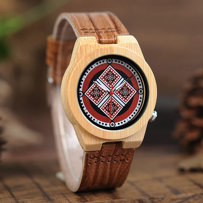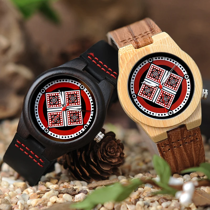 BOBO BIRD Handmade Bamboo Women’s Bracelet Watches Leather Band Luxury Flowers Printing Ladies Watch Custom Logo Holiday Gifts