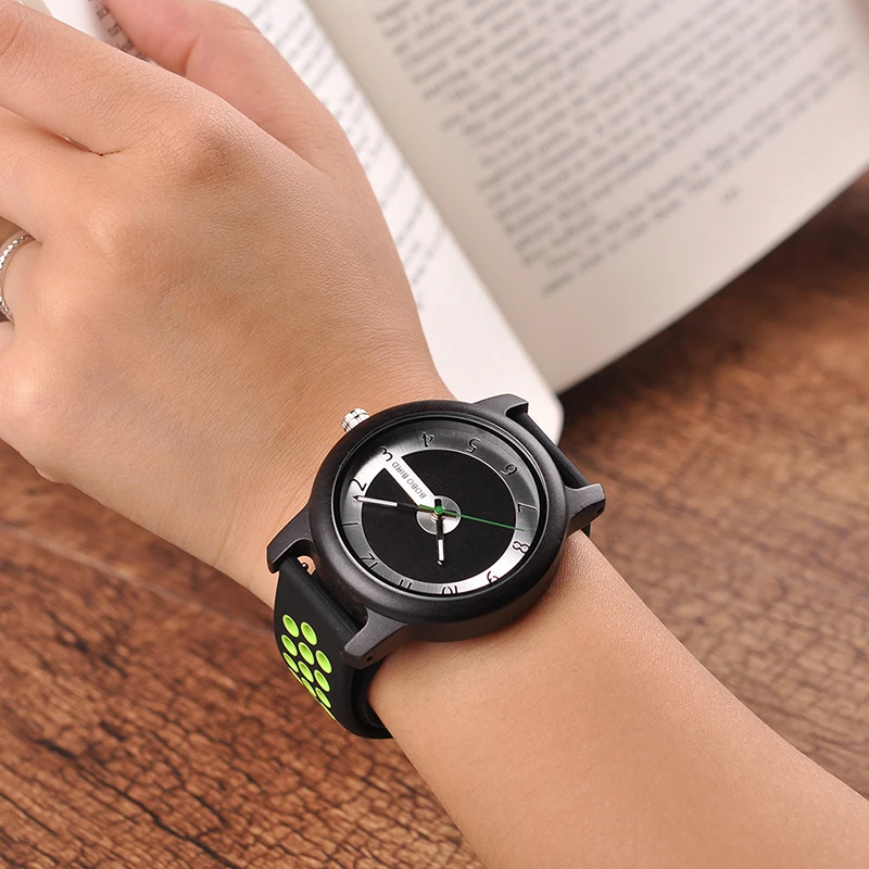 Fashion and casual bamboo watch ,Silicone band with color and hollow ,new design with the clasp.Idea gift watch for young !