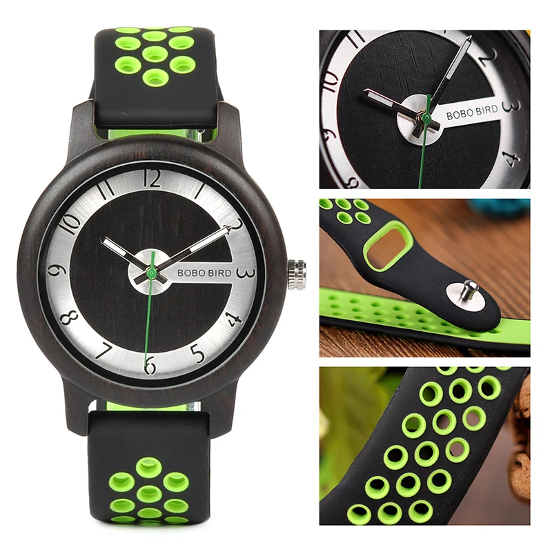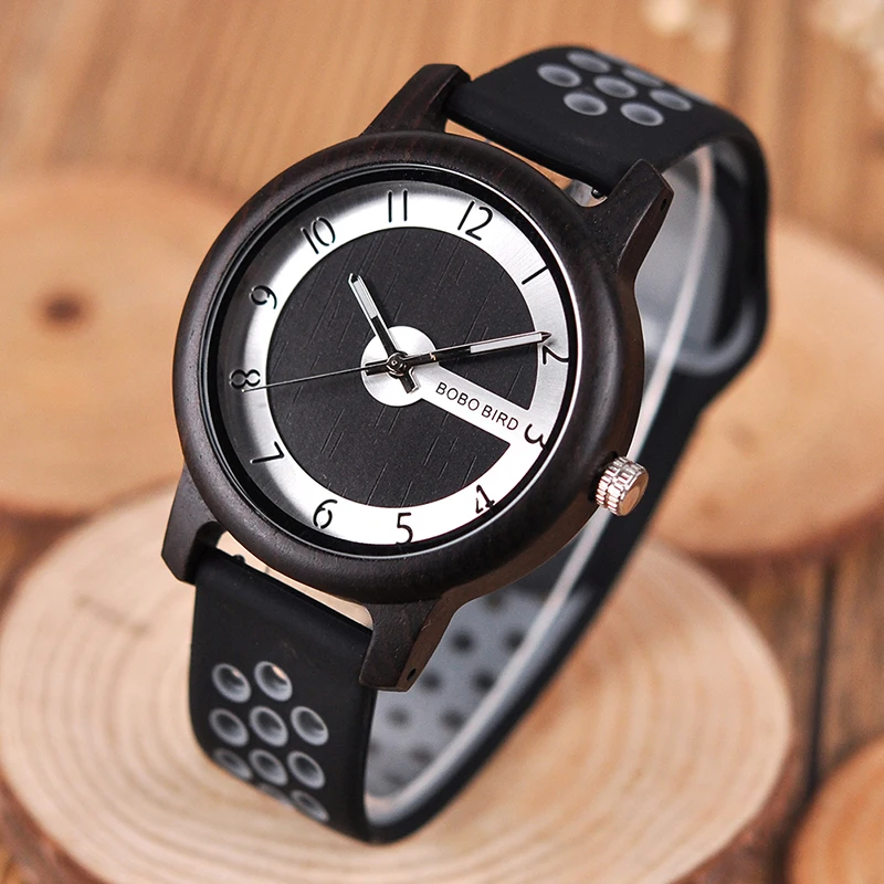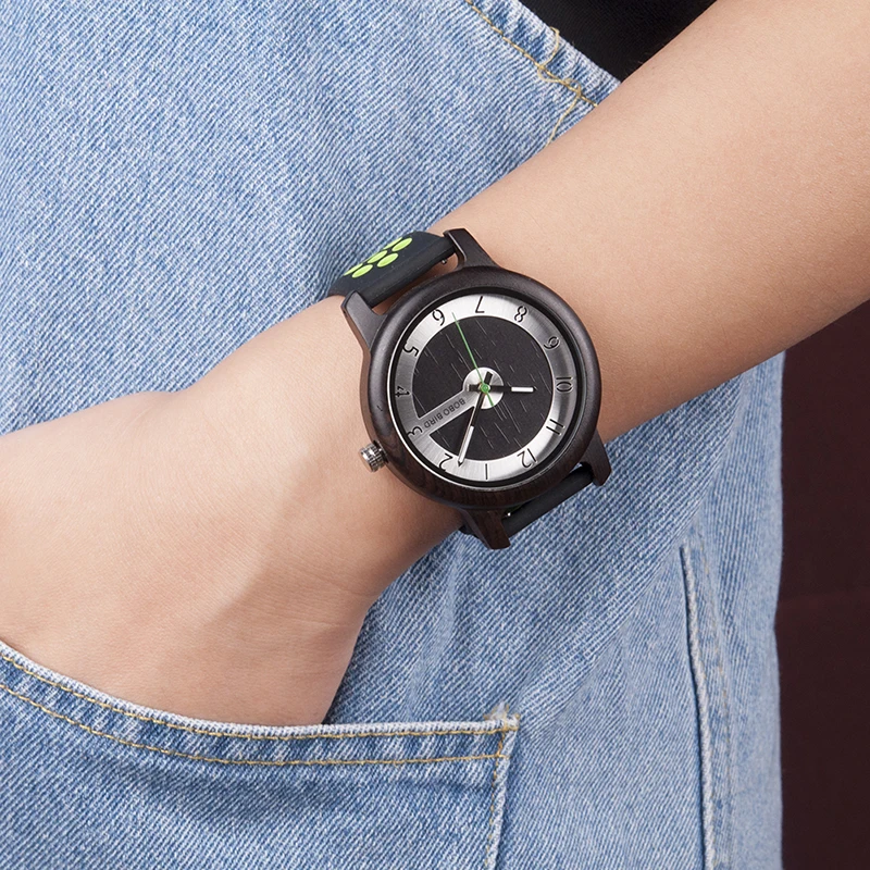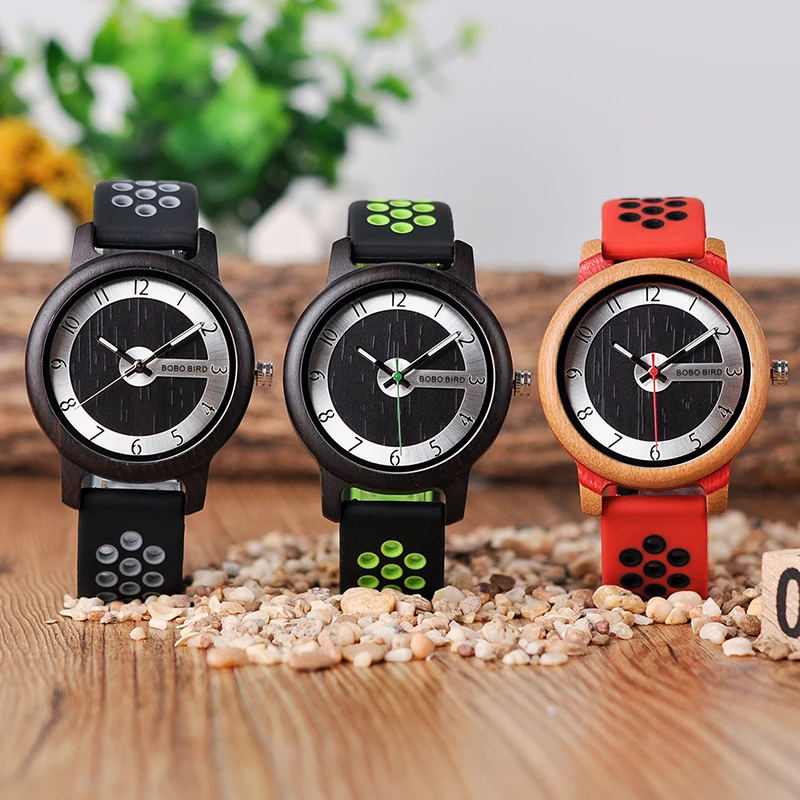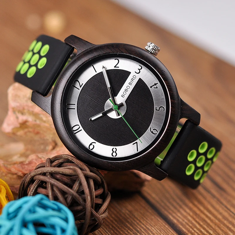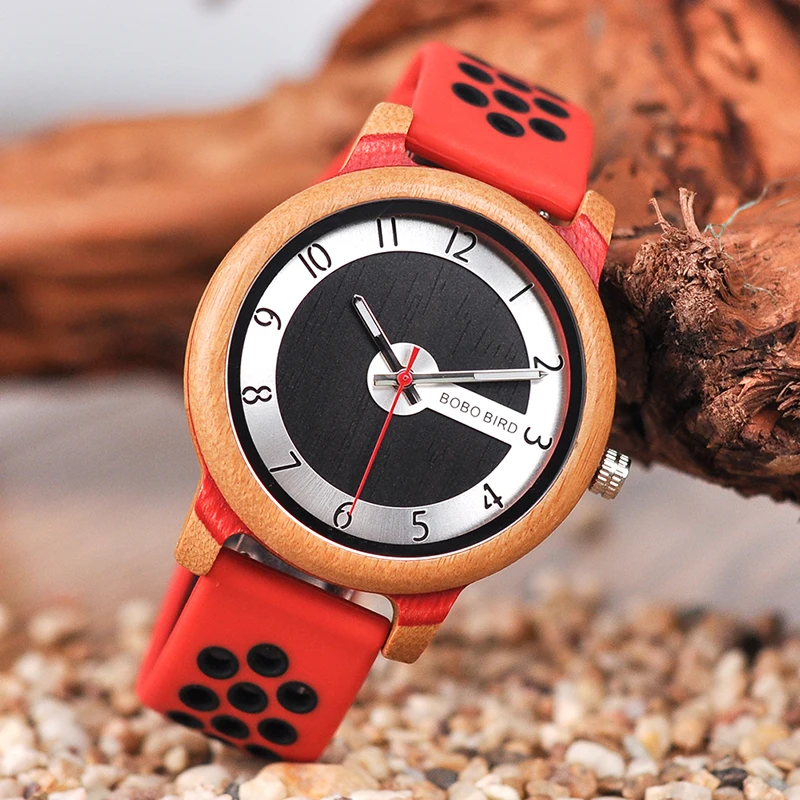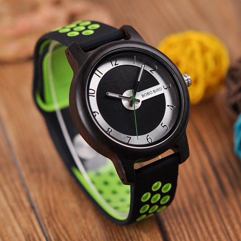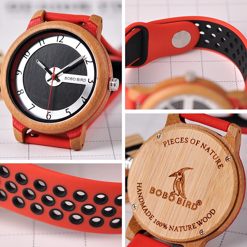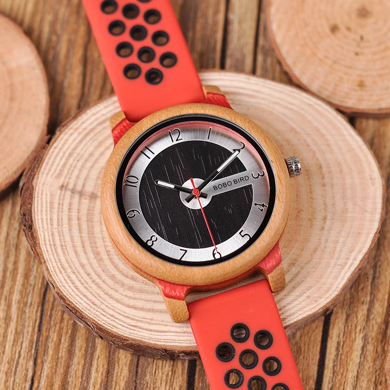 BOBO BIRD Luxury Bamboo Watch Men and Women Silicone Color Strap Writwatches Ideal Gifts Items Relogio Masculino C-R11