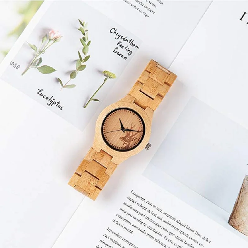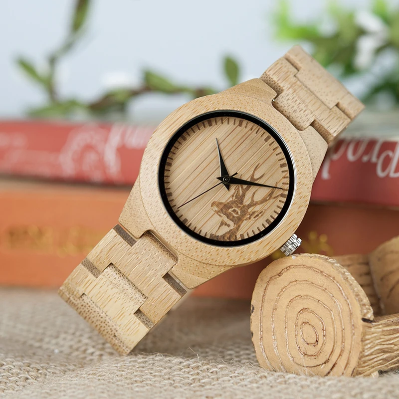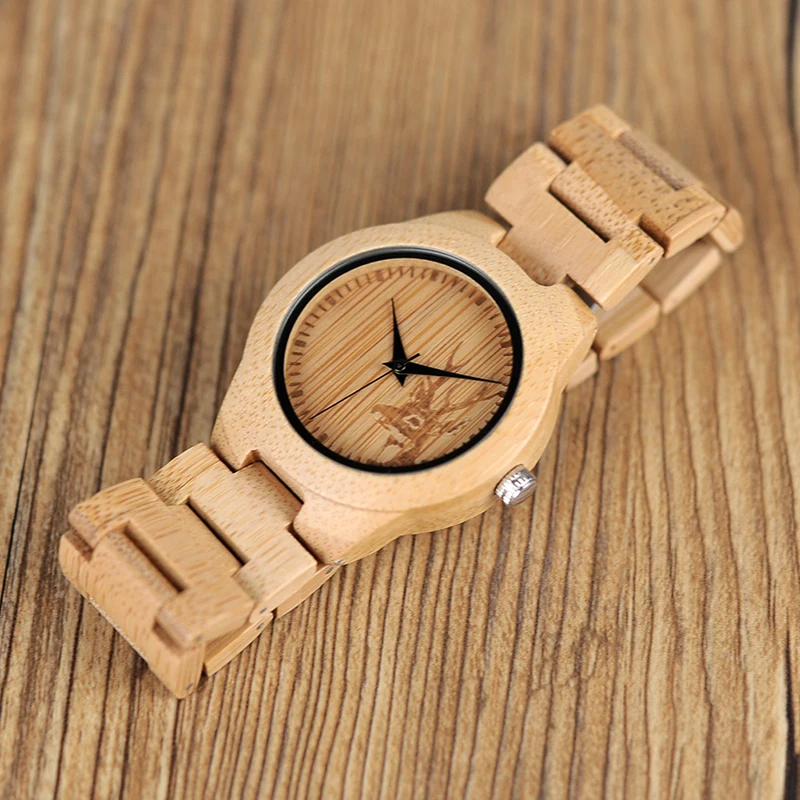 BOBO BIRD Women Watches Relogio Feminino Elk Engraved Face Bamboo Wooden Wristwatches Luxury Brand Handmade Wood Strap C-dE04