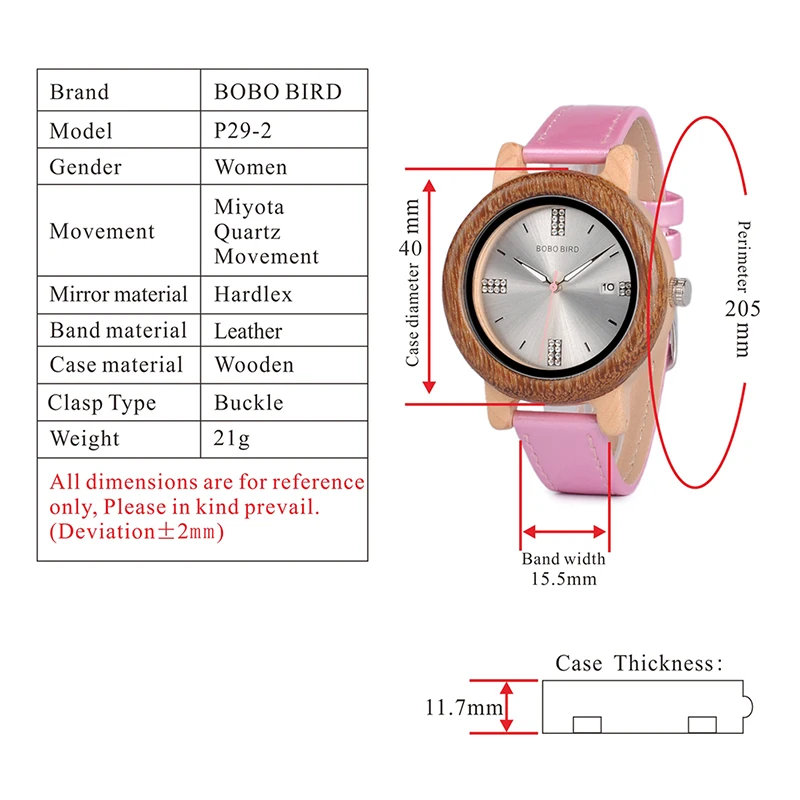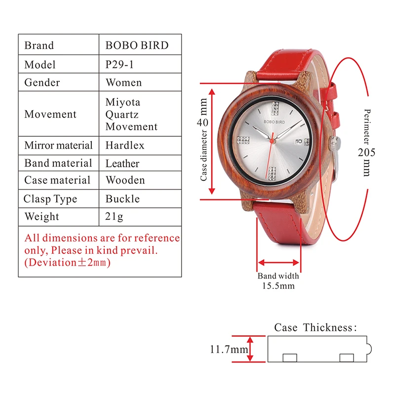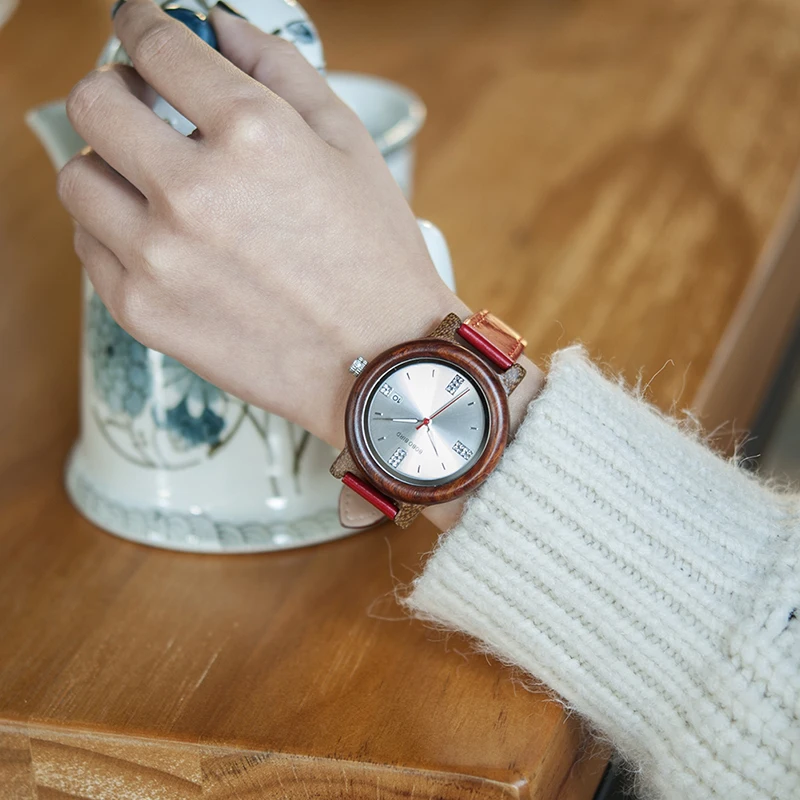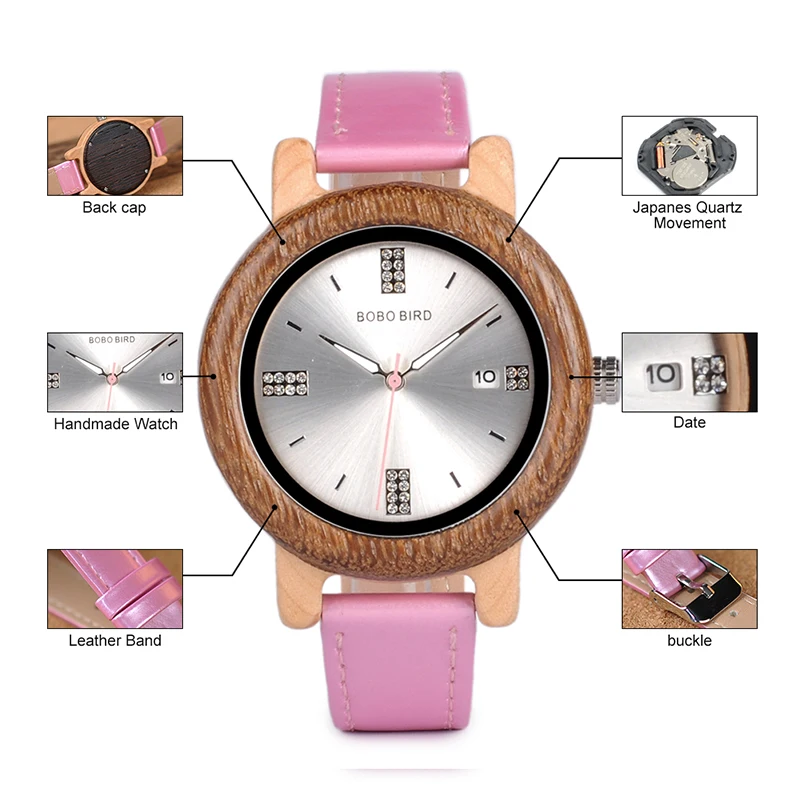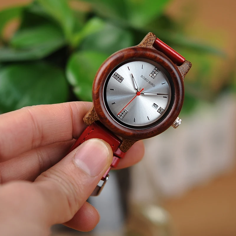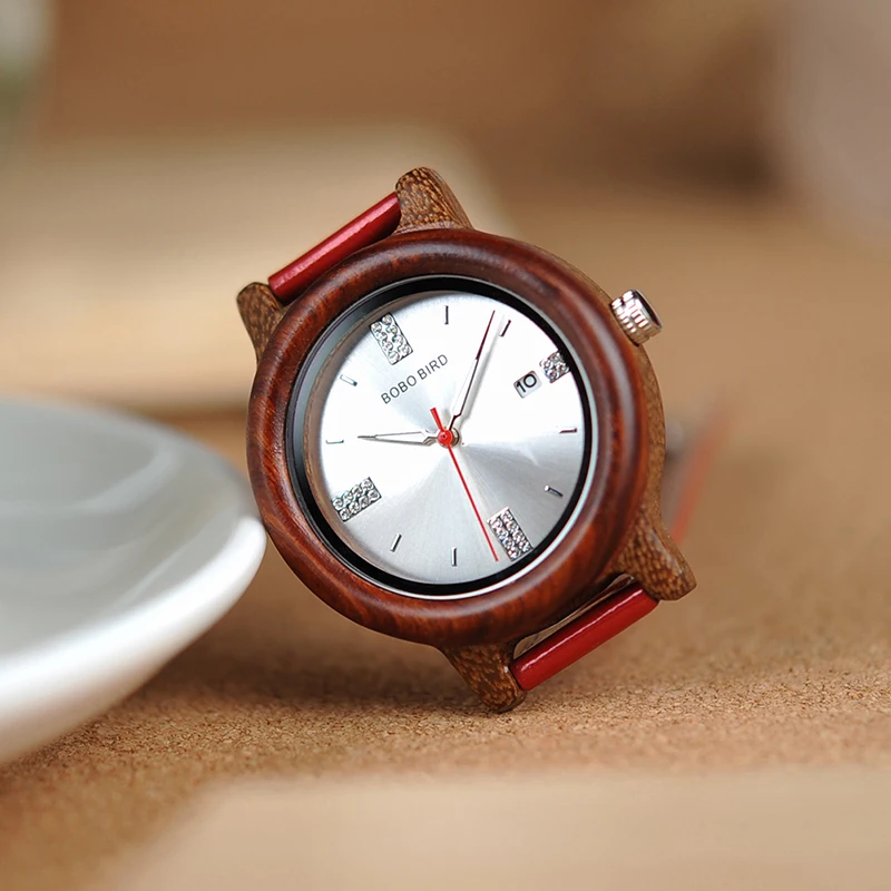 BOBO BIRD Wooden Watch Ladies Rhinestone Dialface with Date Display relogio feminino J-P29