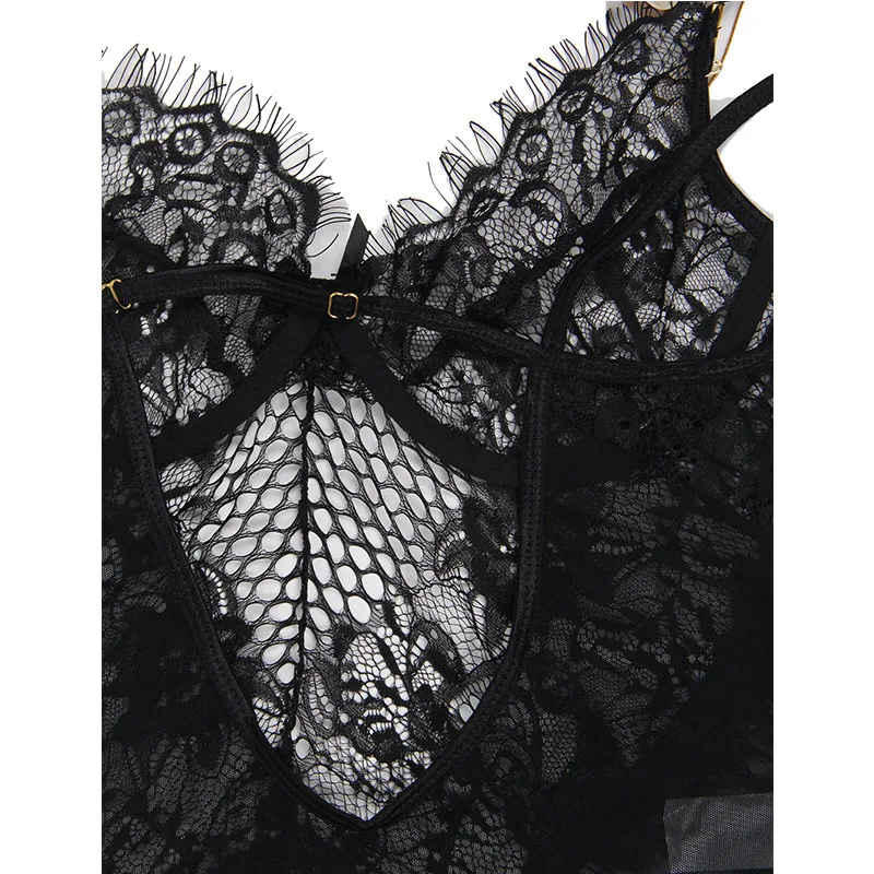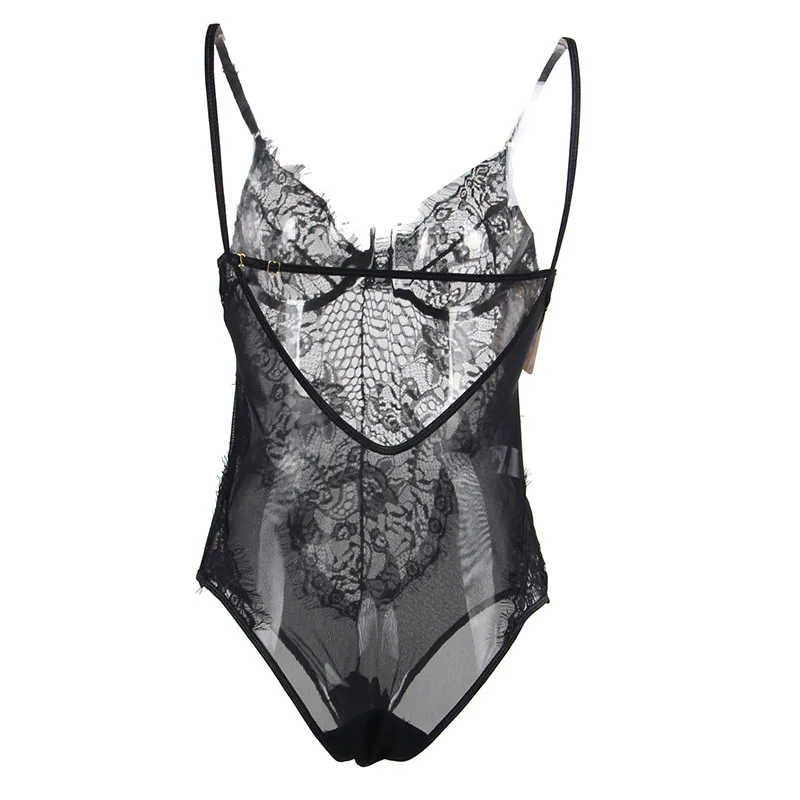 Body Women Strap Plus Size Rompers Black White Lace Mesh Bodysuit Sexy See Though Floral V Neck Sheer Women Bodysuits R80408