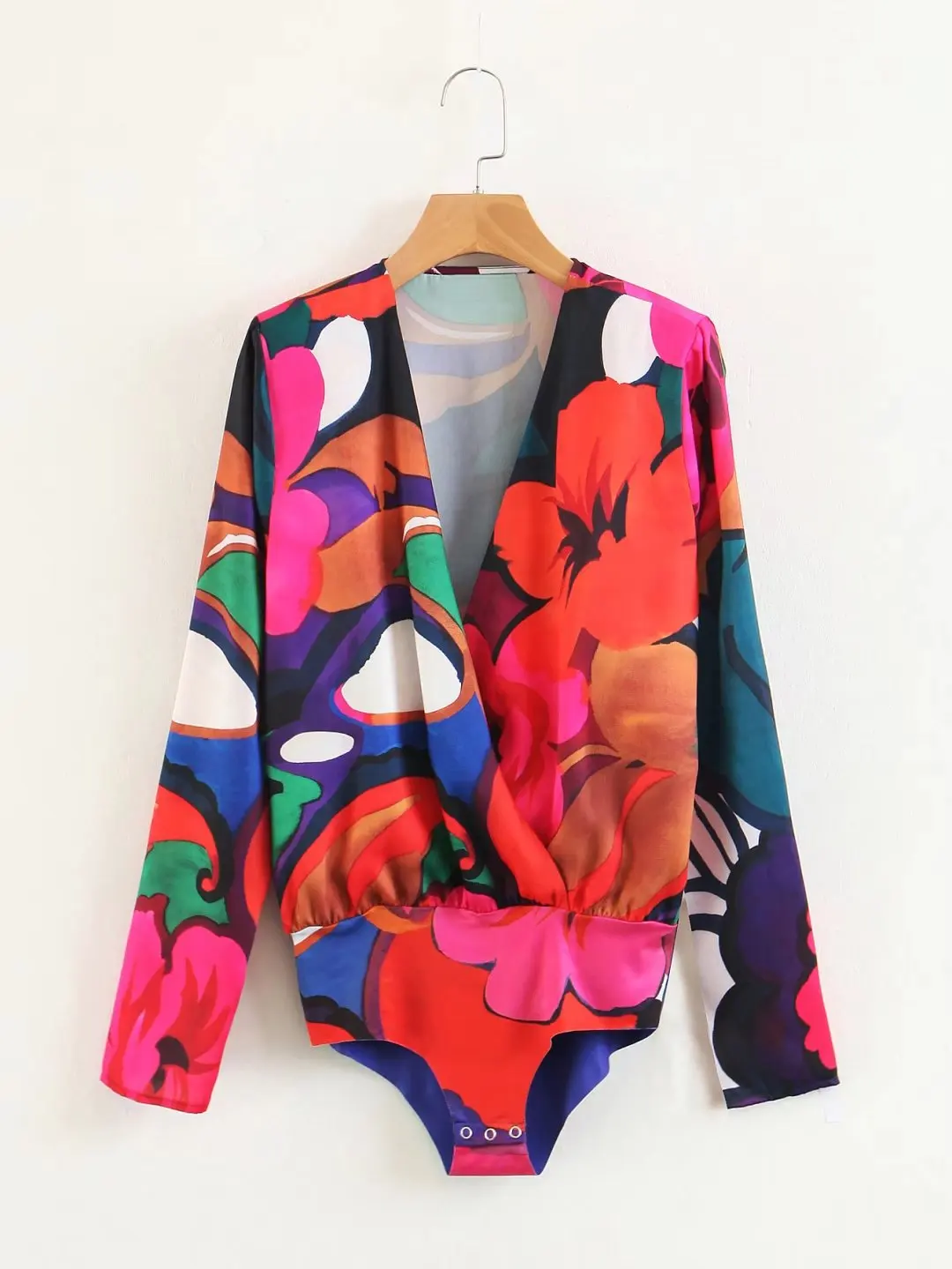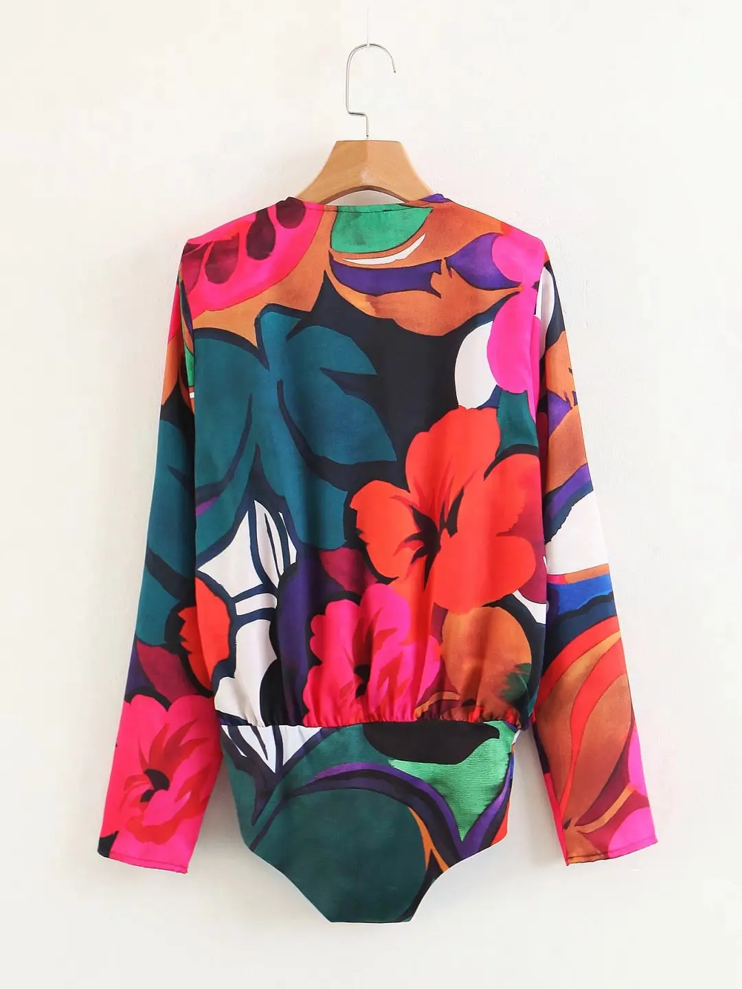 Bodycon Casual Womens Bodysuit Floral Print Oversized Rompers Bodysuits Women V Neck Long Sleeve Women Clothes 2018