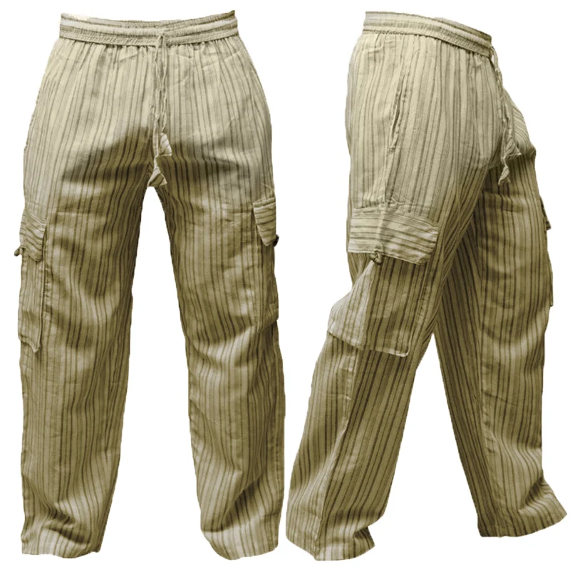Boho Men Casual Pants Baggy Wide Legs Striped Cotton Loose Fitness Cargo Trousers Joggers Elastic Waist 5XL Khaki Pants INCERUN