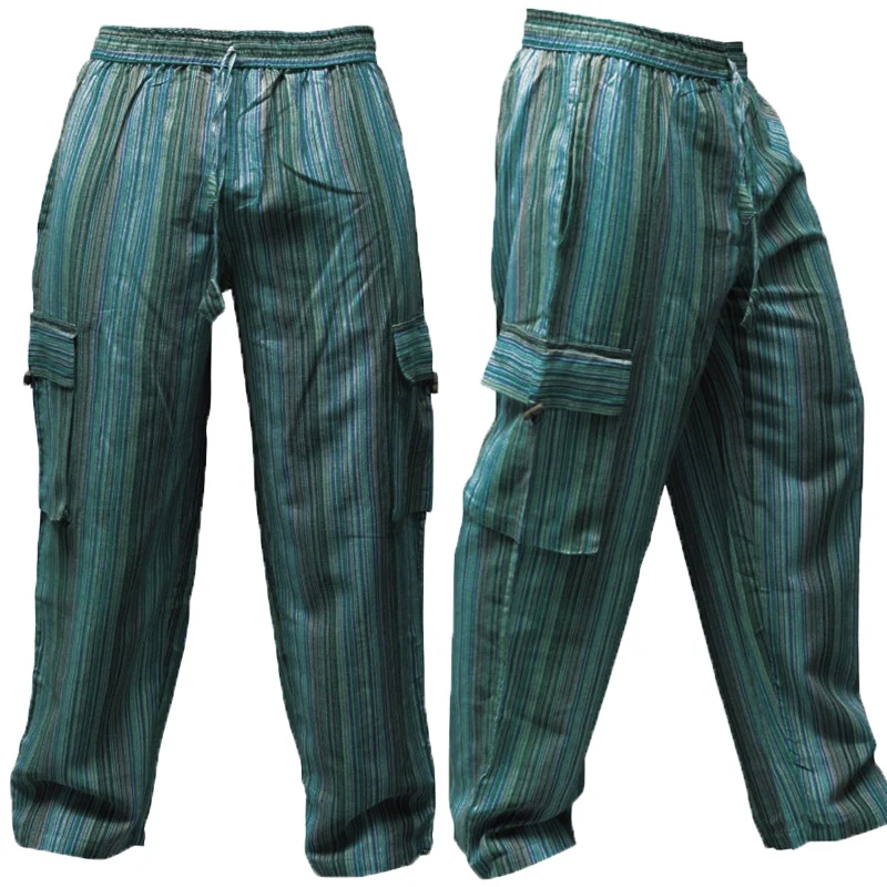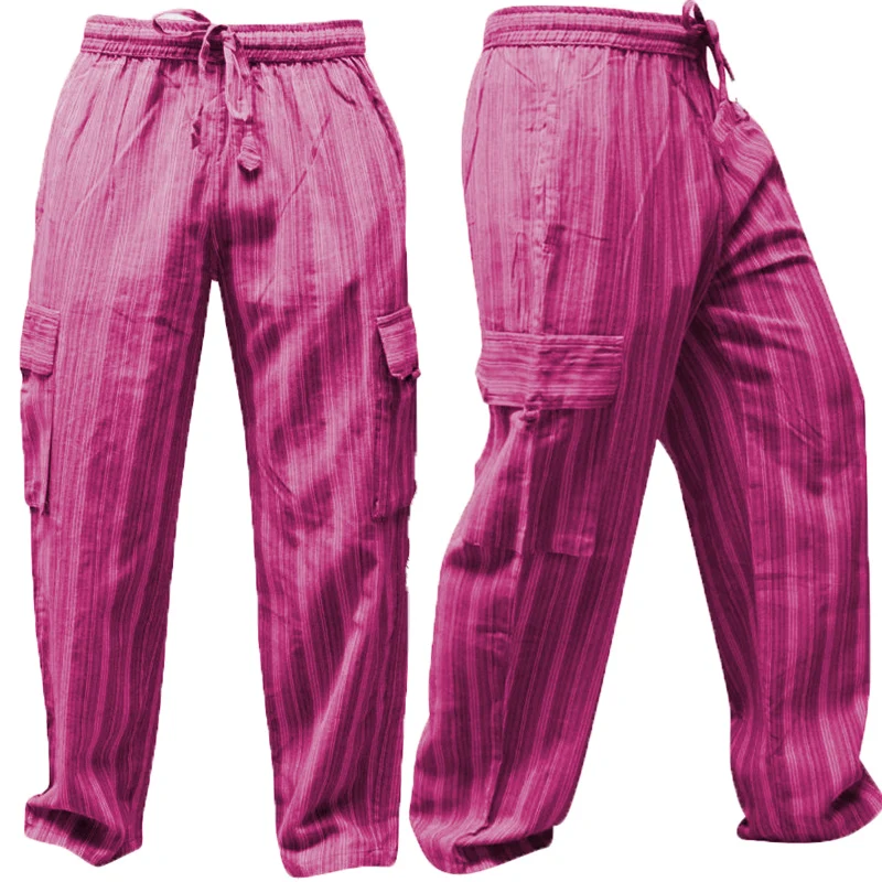 Product Description:Men’s Wide Leg Cargo Summer Trousers Stripes Festival Side Pockets Combat Pants