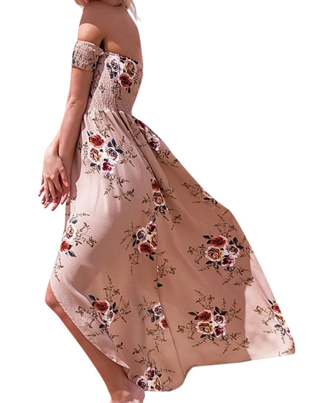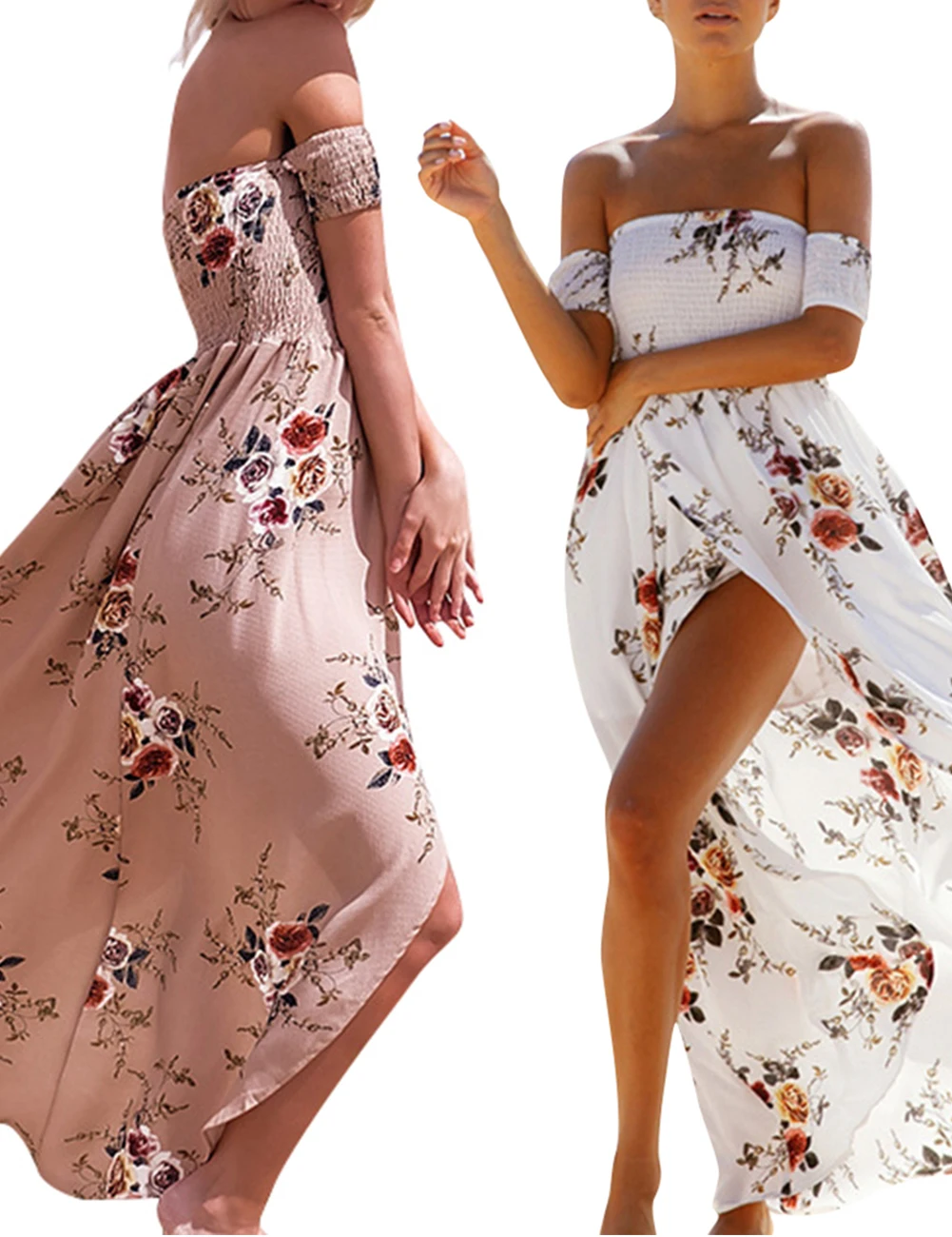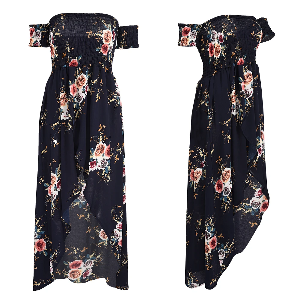 Boho Style Long Dress Women Off Shoulder Beach Summer Floral Print Vintage Chiffon Dresses vestidos de festa For Gifts A2