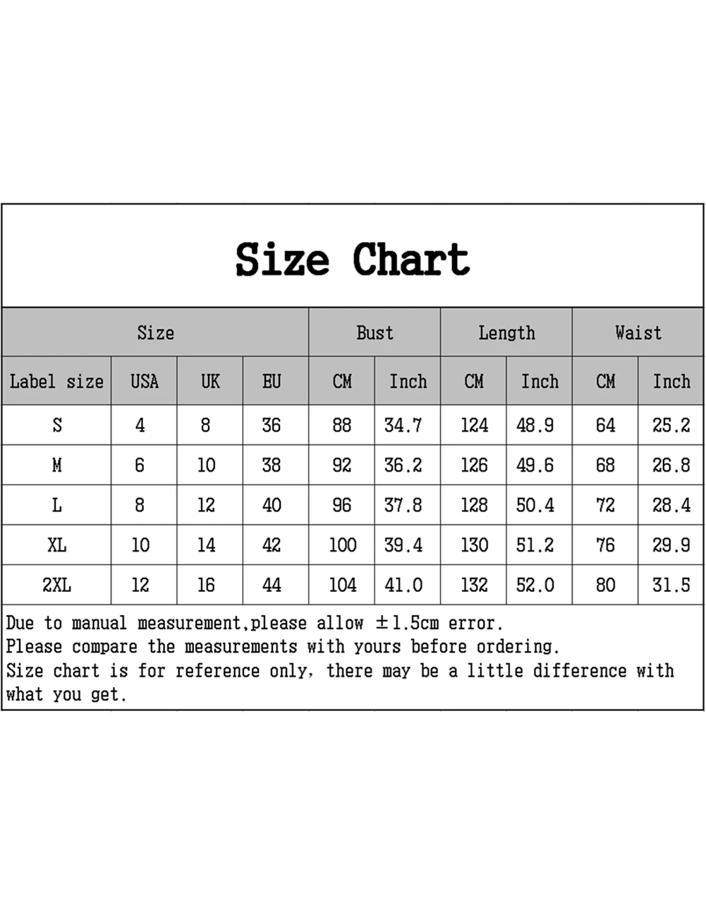 Size: S, M, L, XL, XXL