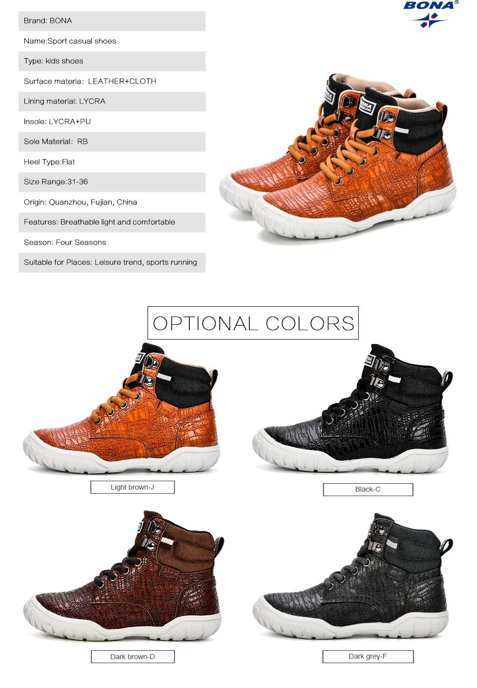 BONA 2018 Autumn New Arrival Mid-Calf Boys Leisure Shoes Fashion Children Sport Shoes Outdoor Trendy Casual Sneakers For Girls