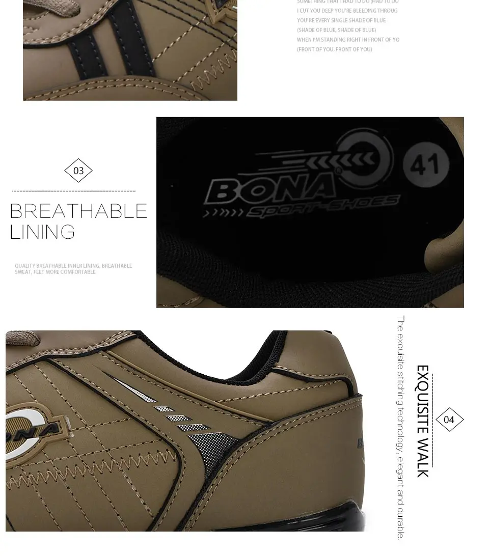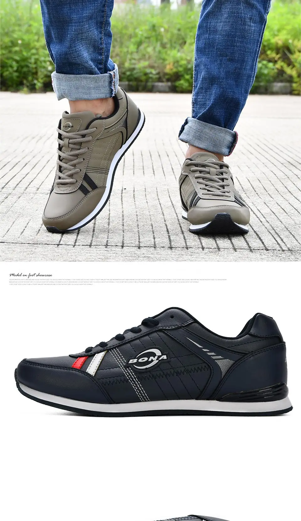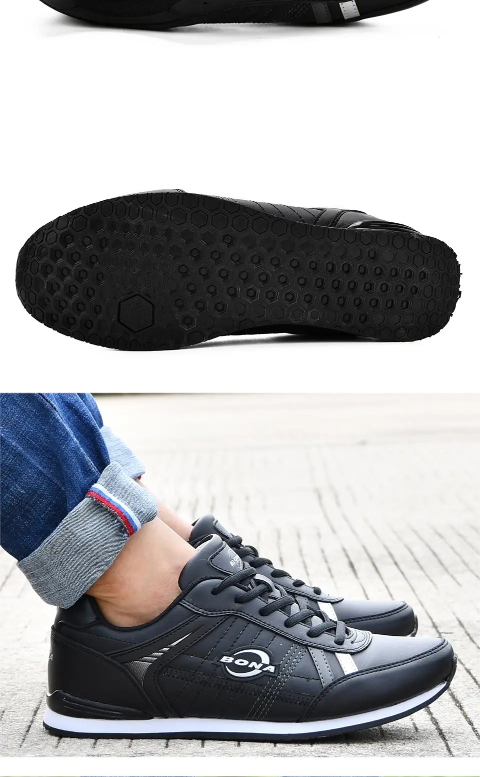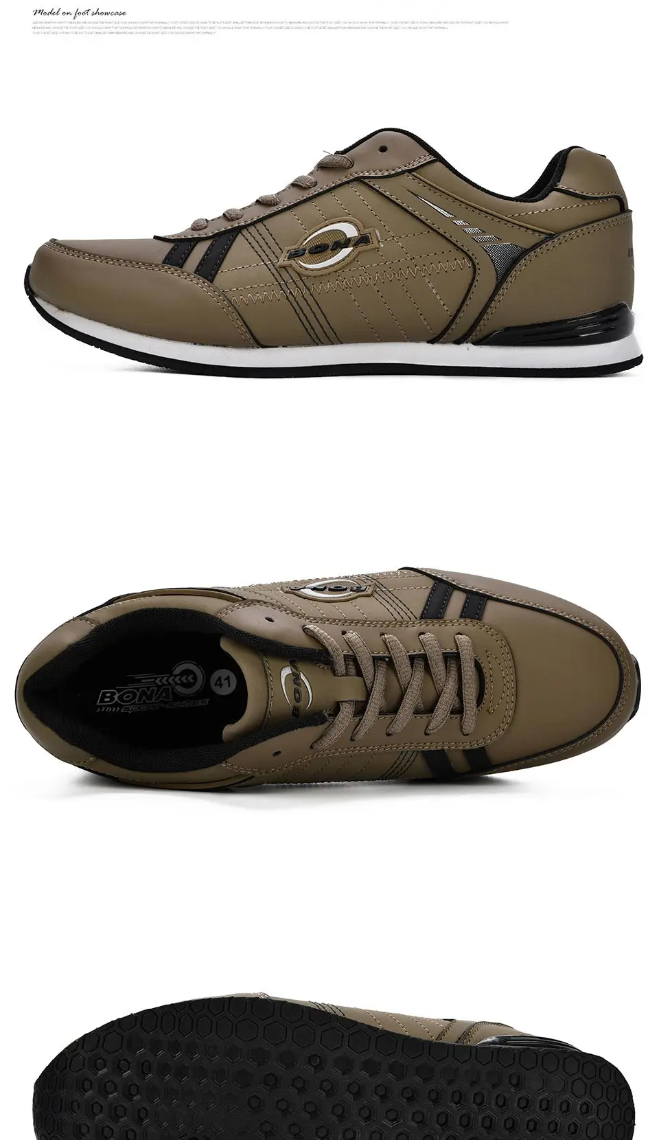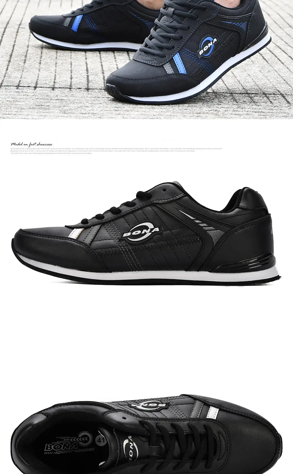 BONA Autumn Leather Sports Shoes Youth Men Trendy Comfortable Running Shoes Korean Version Men’s Outdoor Jogging Sneakers Shoes