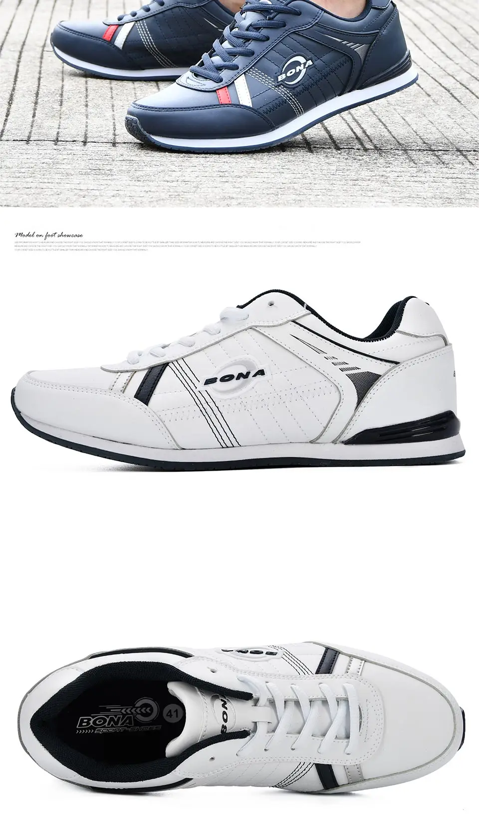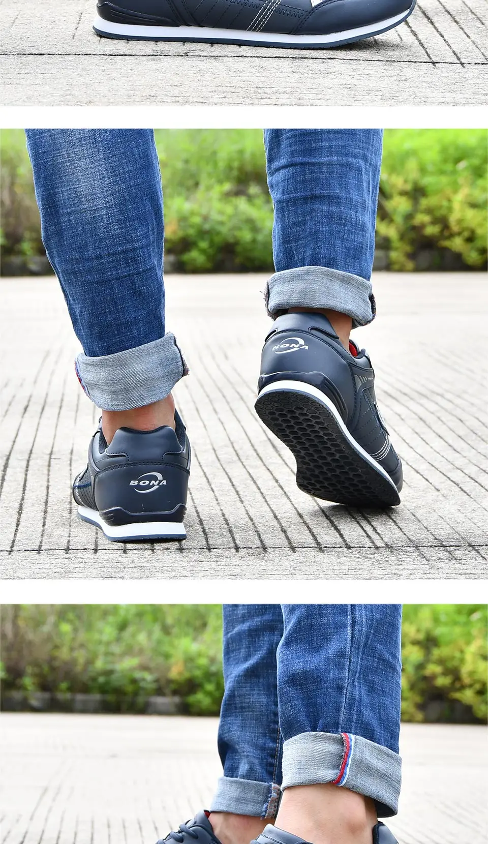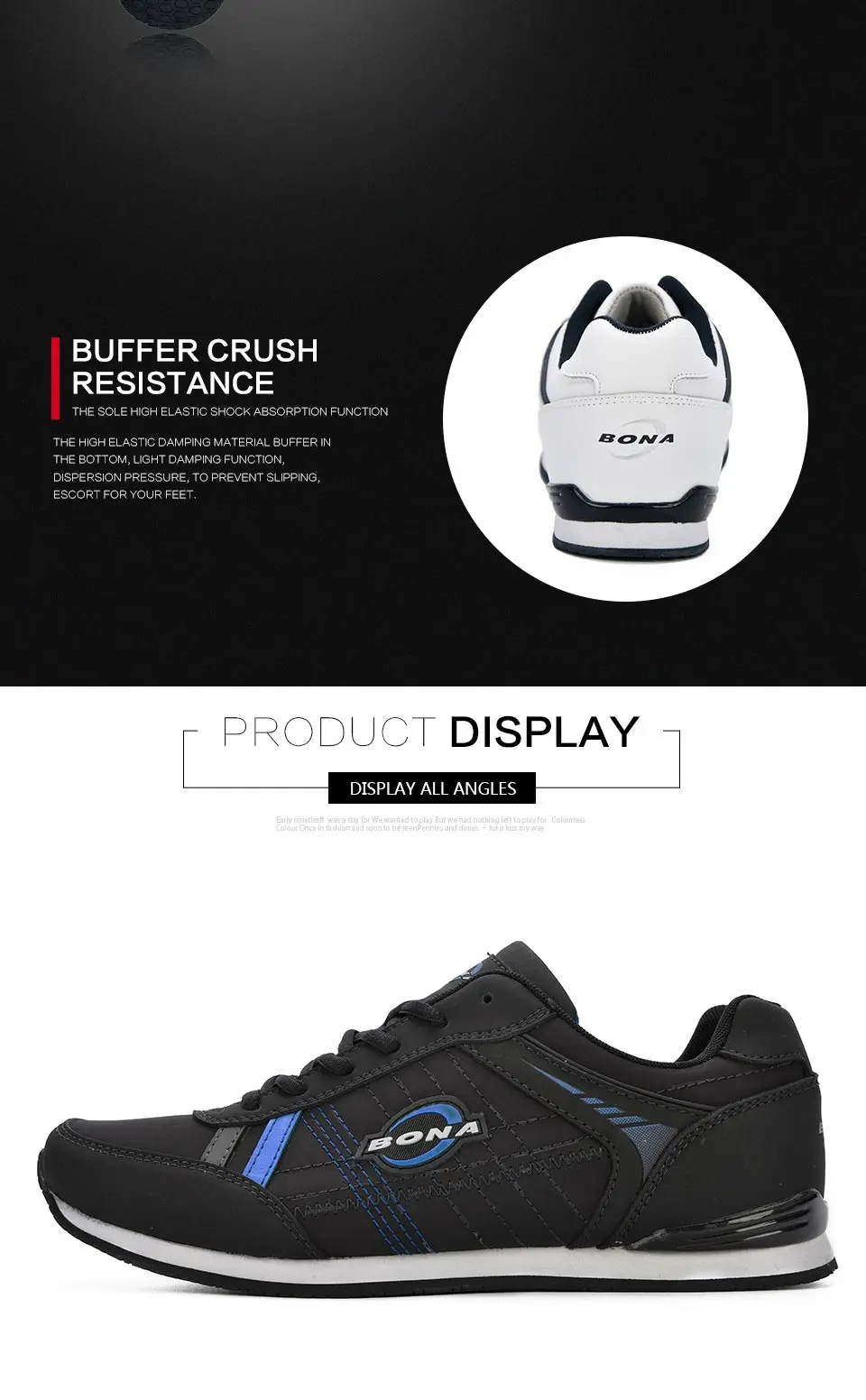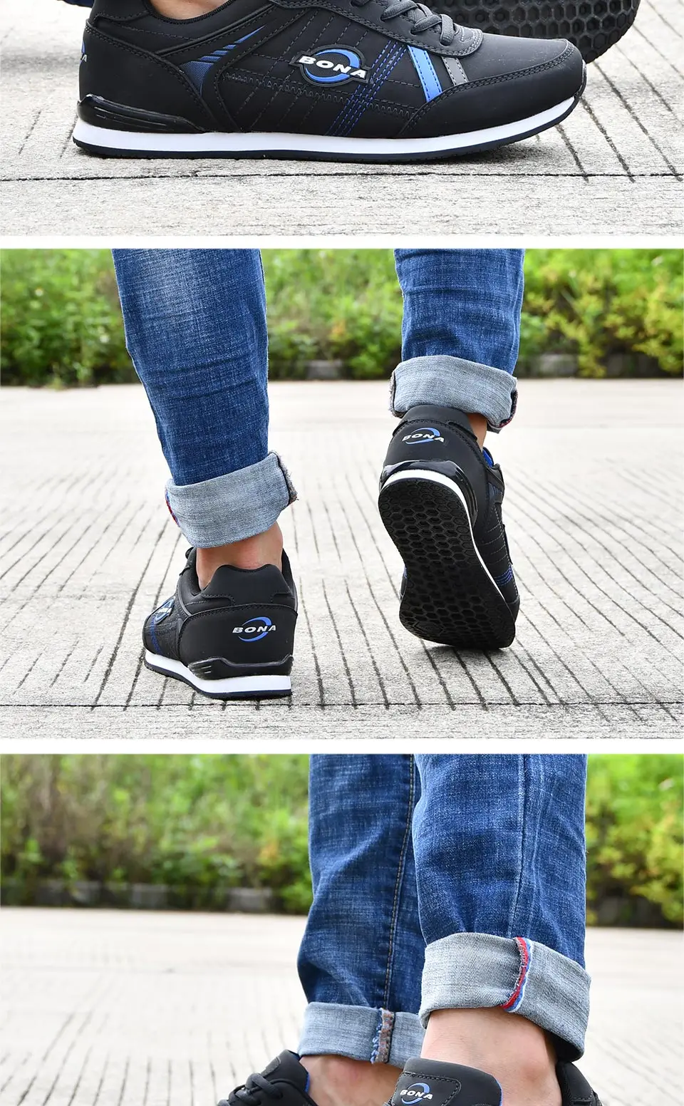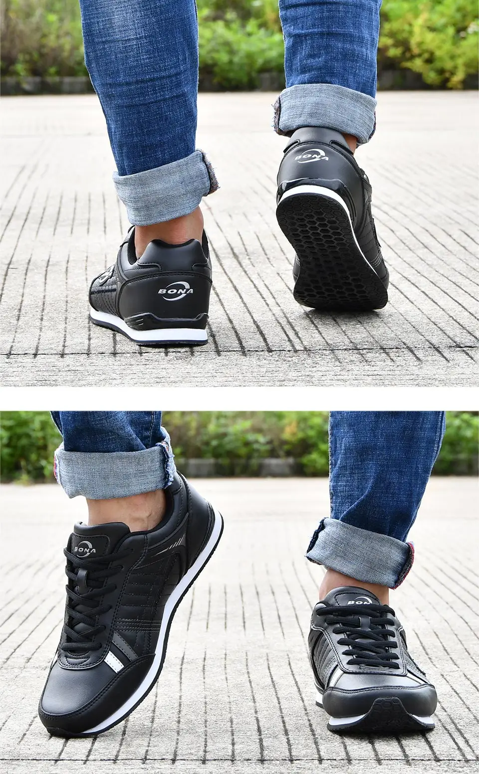 BONA Autumn Leather Sports Shoes Youth Men Trendy Comfortable Running Shoes Korean Version Men’s Outdoor Jogging Sneakers Shoes