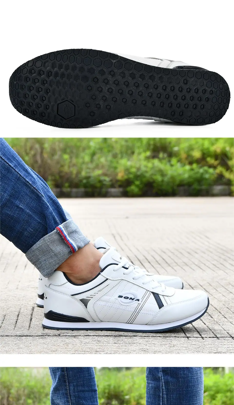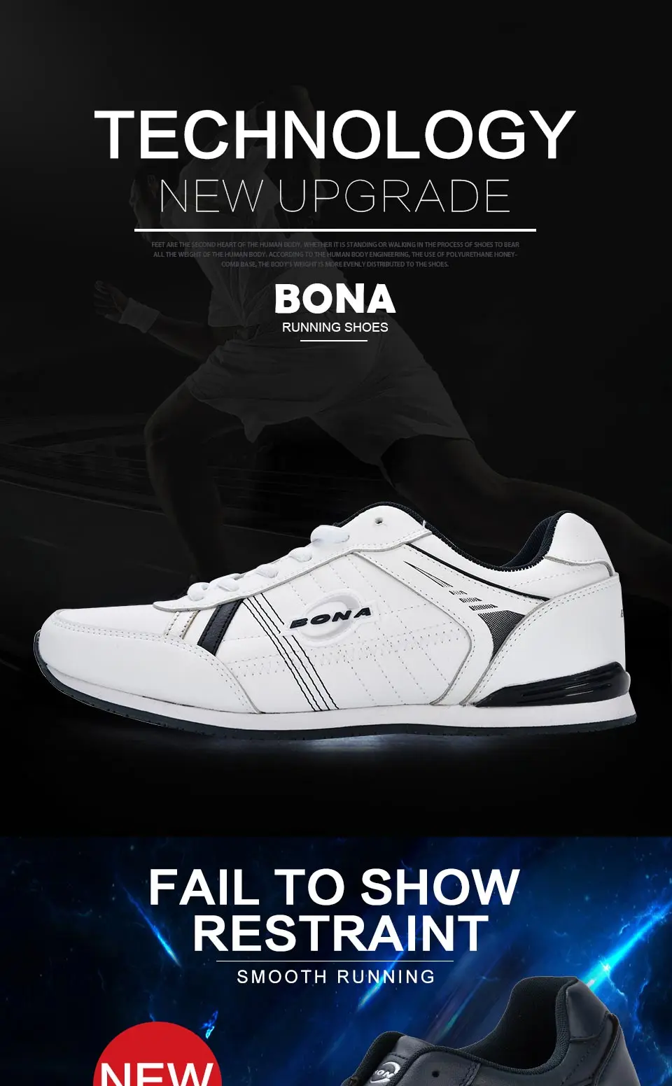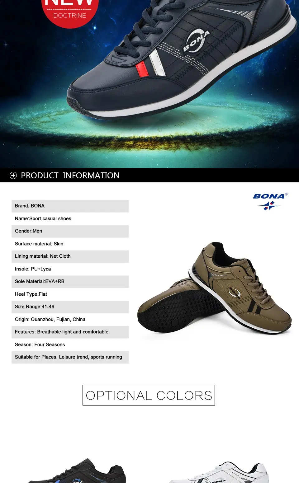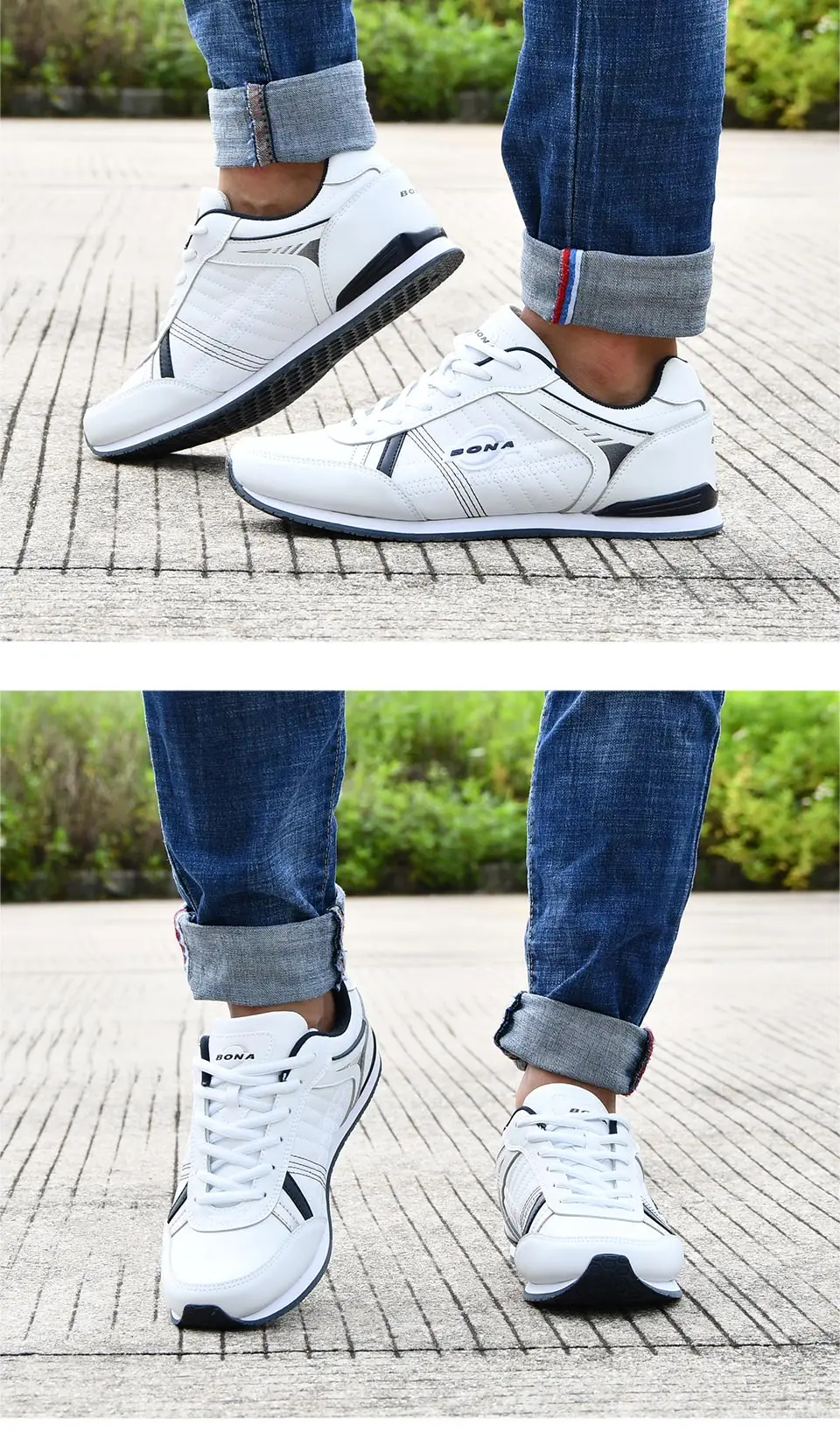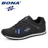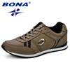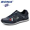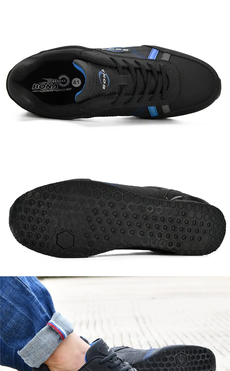 BONA Autumn Leather Sports Shoes Youth Men Trendy Comfortable Running Shoes Korean Version Men’s Outdoor Jogging Sneakers Shoes