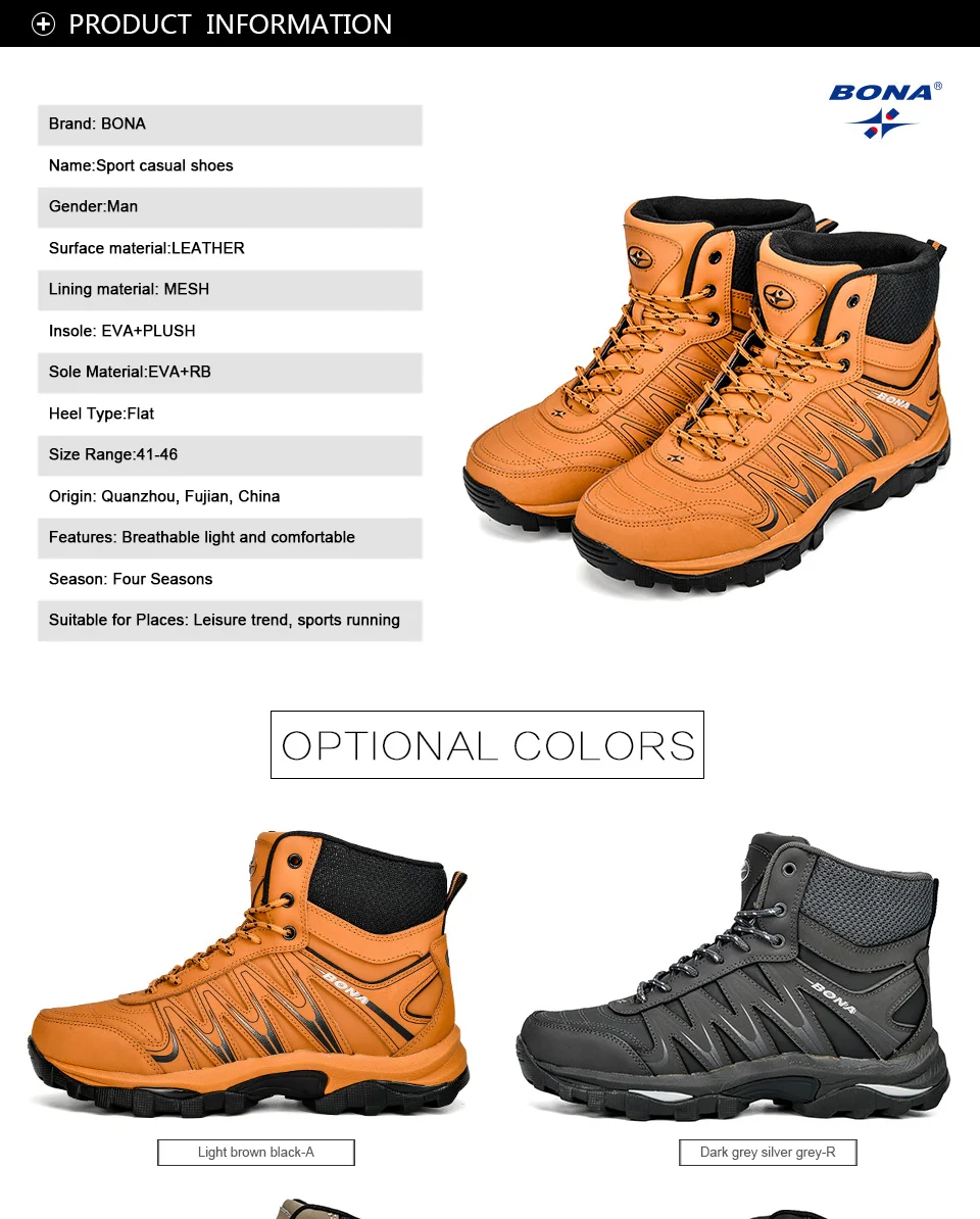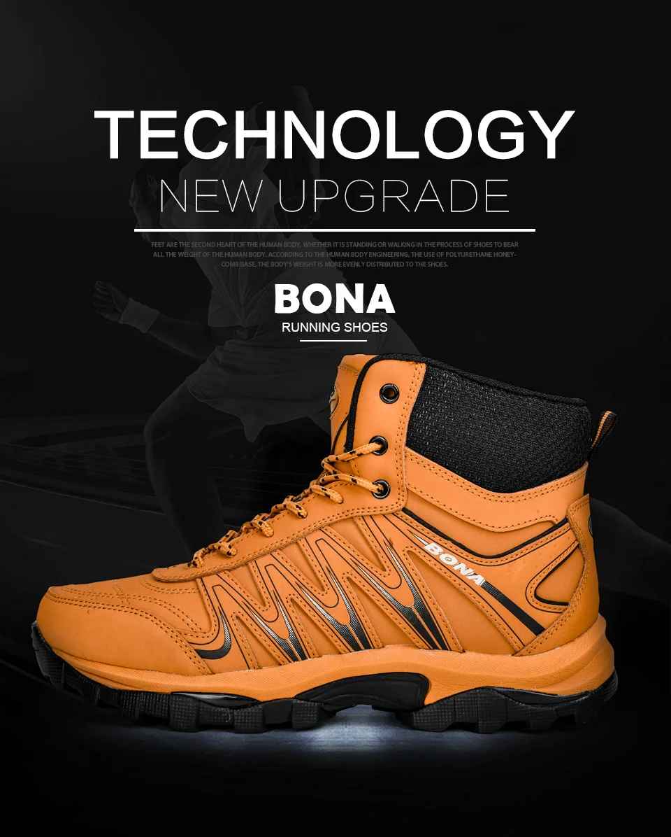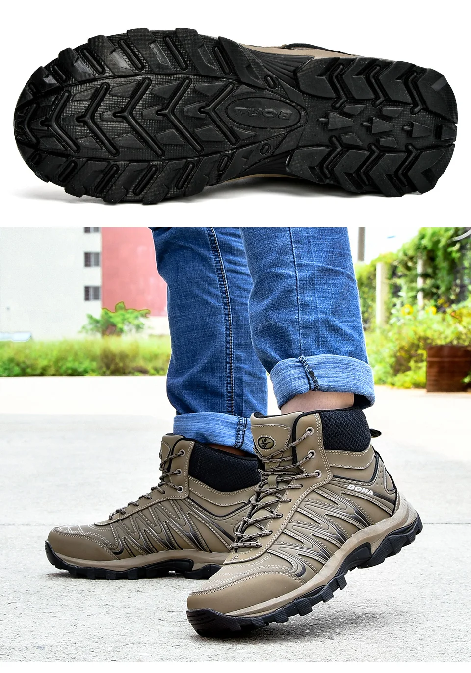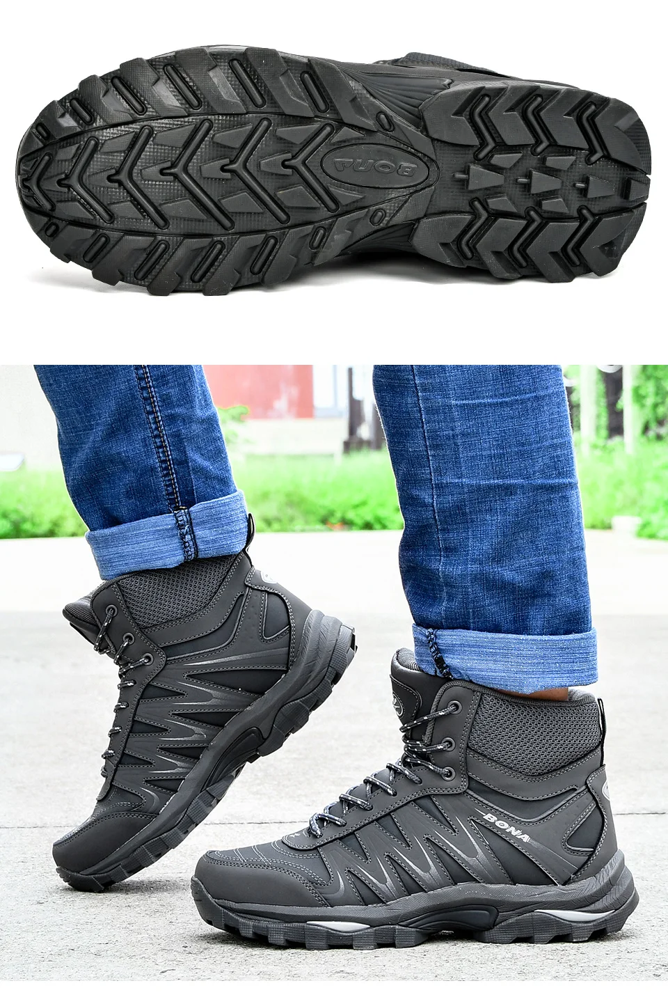 BONA New Arrival Big Size Men’s Hiking Shoes Male Outdoor Antiskid Breathable Trekking Hunting Tourism Mountain Shoes Durable