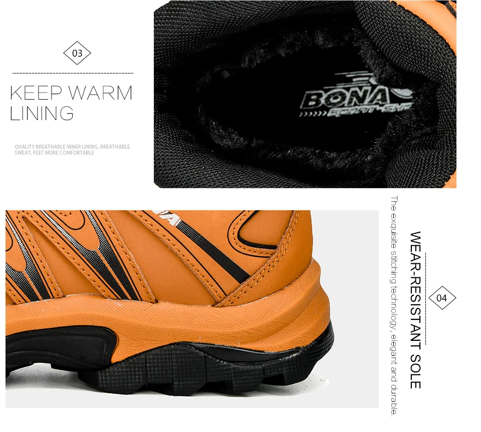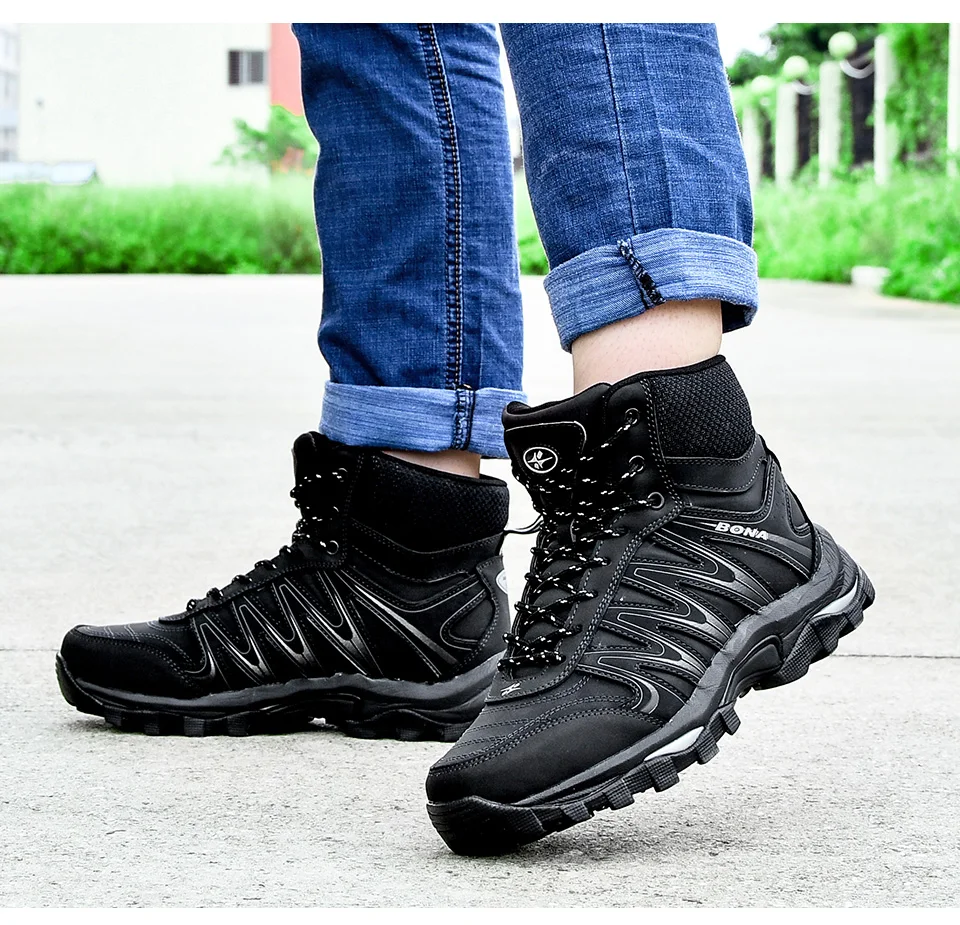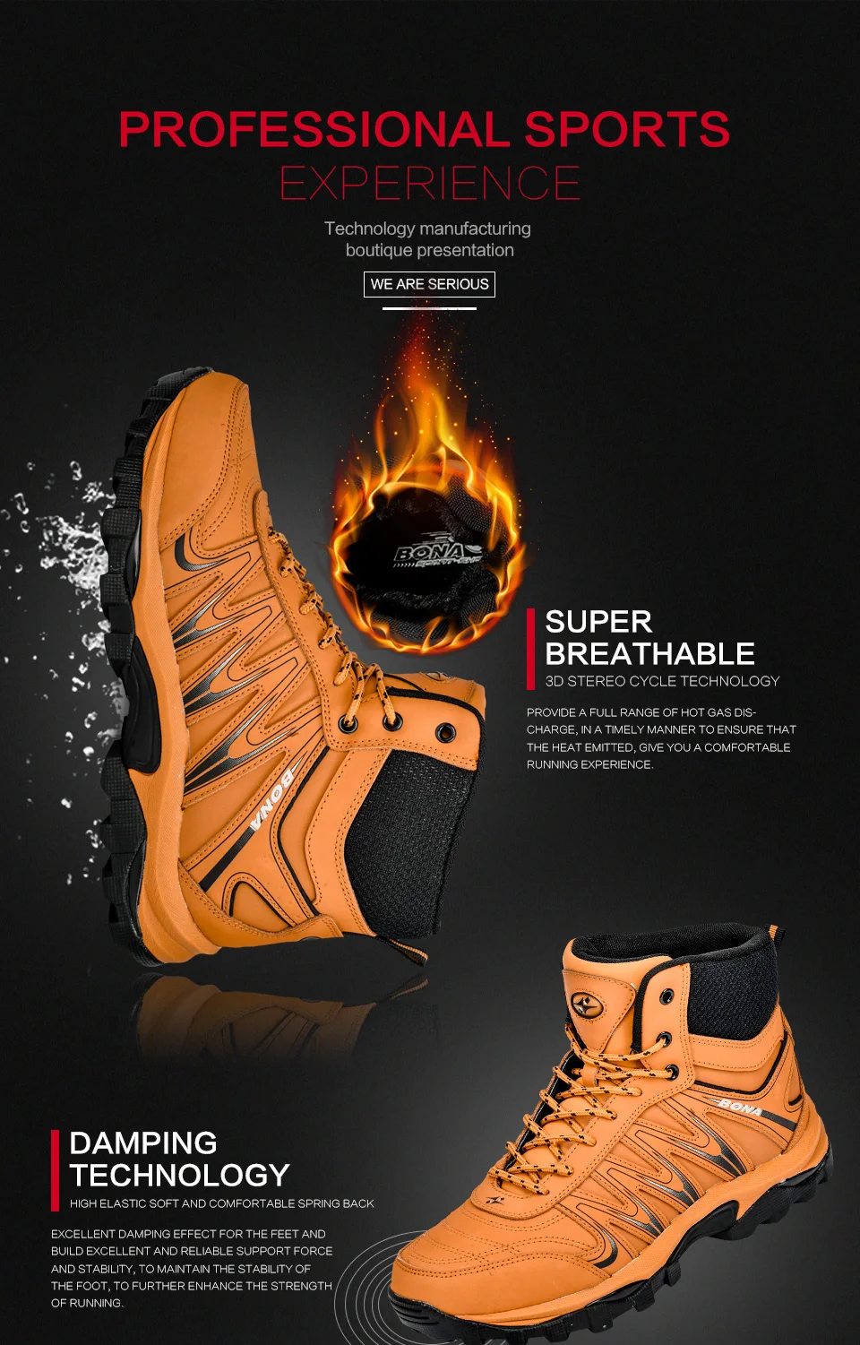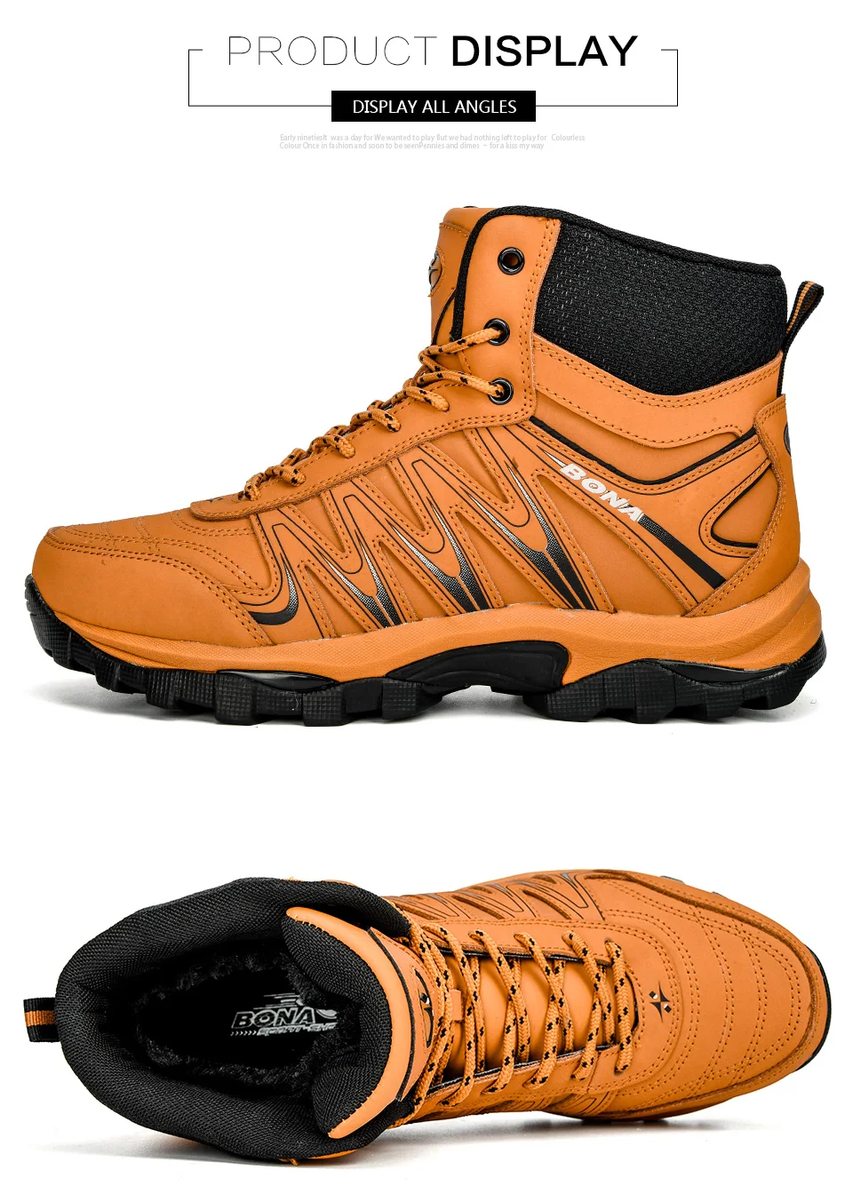 BONA New Arrival Big Size Men’s Hiking Shoes Male Outdoor Antiskid Breathable Trekking Hunting Tourism Mountain Shoes Durable
