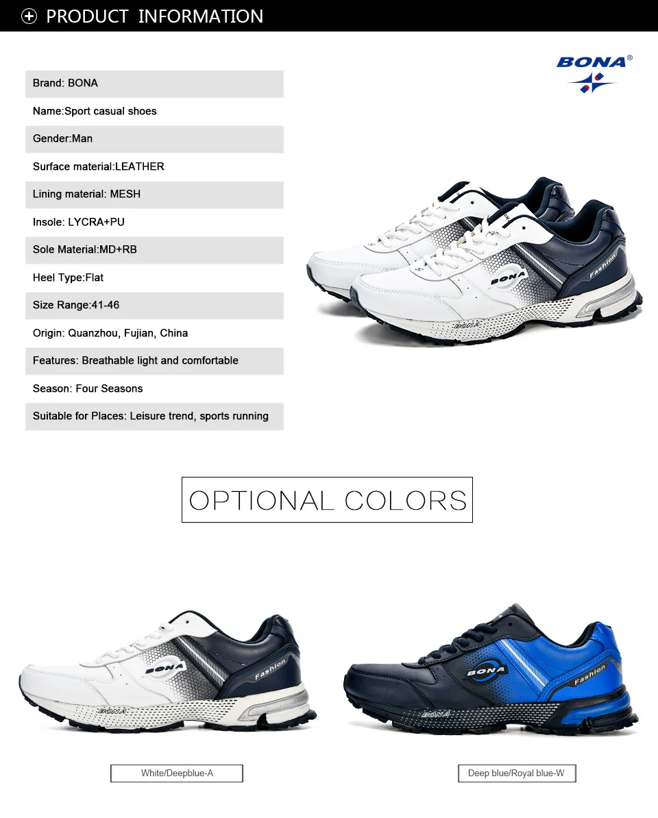 BONA New Design Classics Style Men Running Shoes Lace Up Sport Shoes Outdoor Walking Durable Outsole Jogging Comfy Sneakers