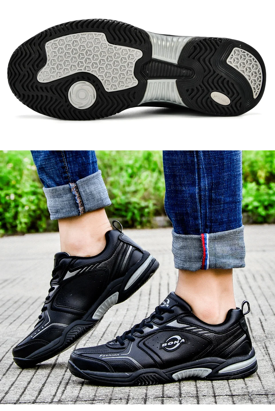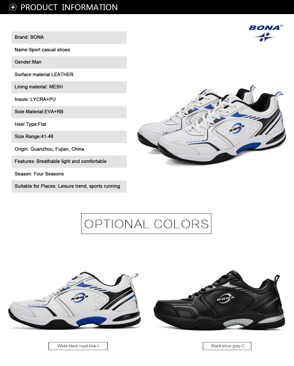 BONA New Popular Men Tenis Shoes Leather Outdoor Sport Shoes Classics Jogging Shoes Comfortable Trendy Man Sneakers Shoes