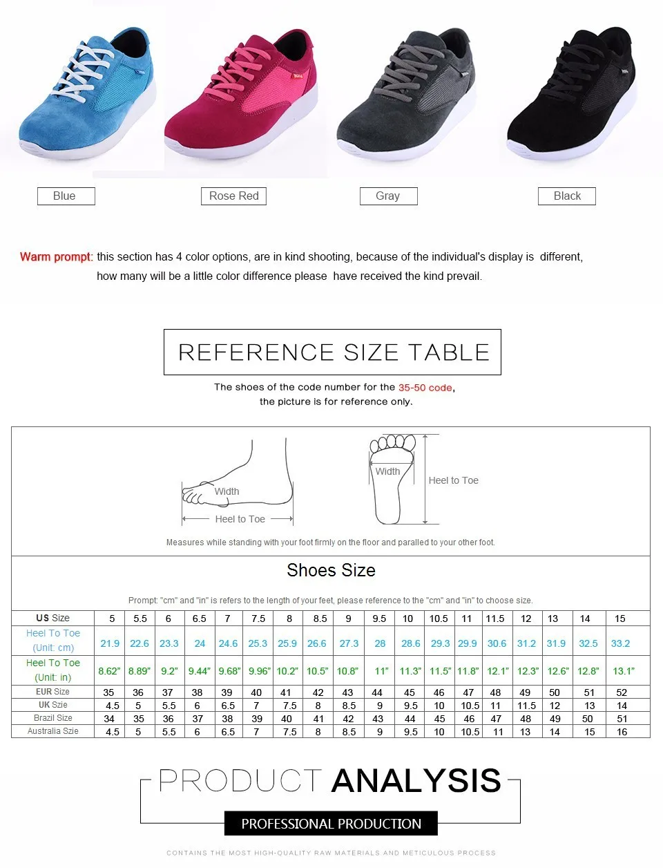Before you make the order, you should be careful to measure your feet length (from heel to toe) and then you should pay more attention to our size table. You can find suitable size for you in our size table. Finally, you decide what size you buy.