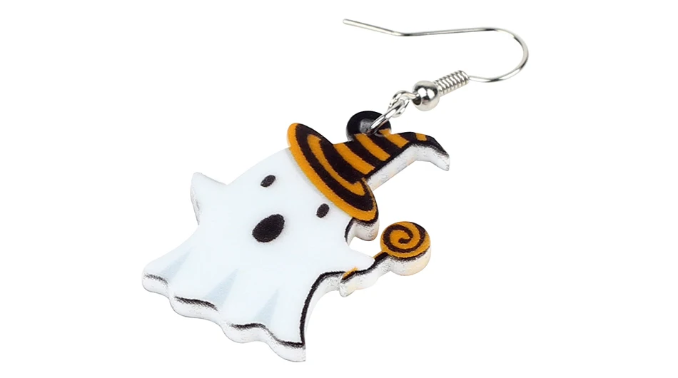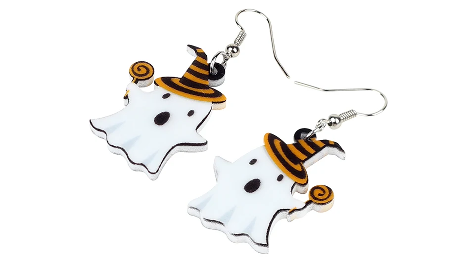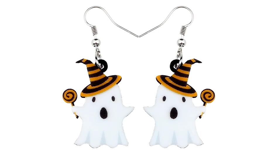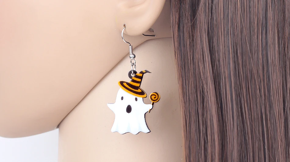 Bonsny Acrylic Cute Halloween Lollipop Ghost Earrings Drop Dangle Big New Fashion Festival Jewelry For Women Girls Teen Kid Gift