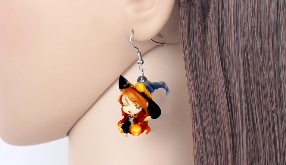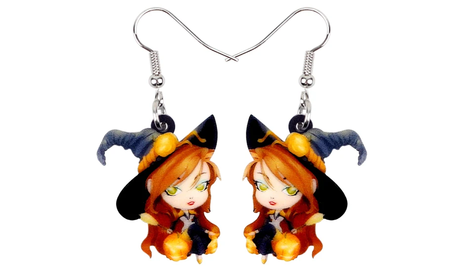 Bonsny Acrylic Halloween Anime Magical Witch Earrings Drop Dangle Fashion Cute Jewelry For Women Girls Teens Wholesale Accessory