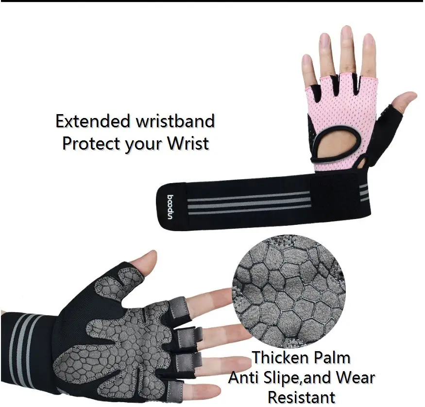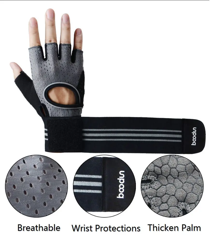 Boodun Brand New Professional Weight Lifting Glove With Extended Wristband For Crossfit Gym Fitness Riding Climbing Workout