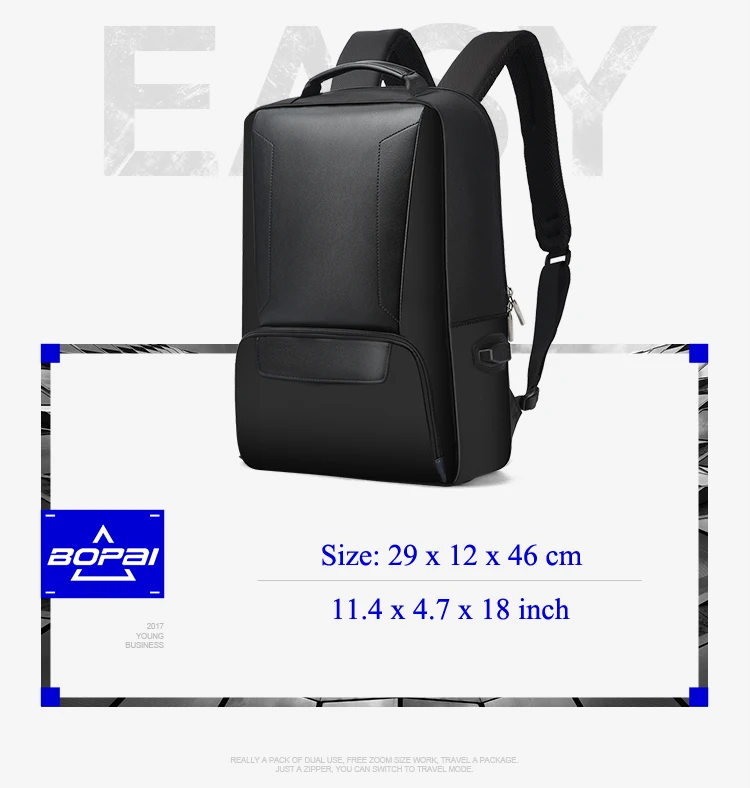 BOPAI 2018 Men Laptop Backpack 15.6 Inch Daily Work Backpack Men Black Leather Schoolbag High School back pack mochila escolar