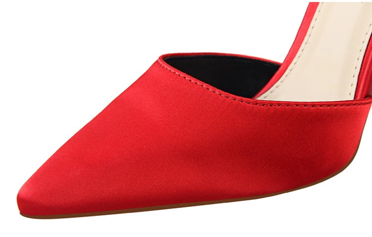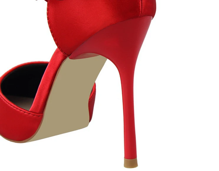 Bow Red High Heels bridal shoes Woman Pumps Satin Heels Wedding Shoes Ladies Red High Heels Shoes 10cm