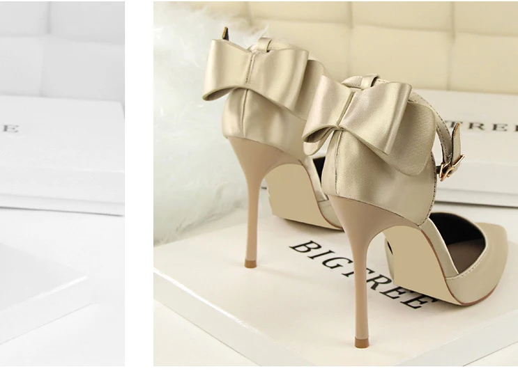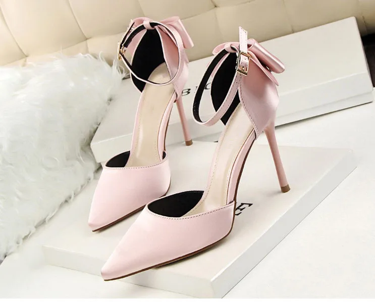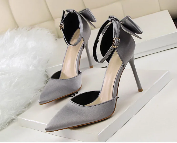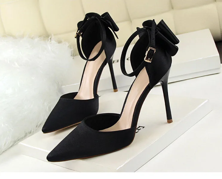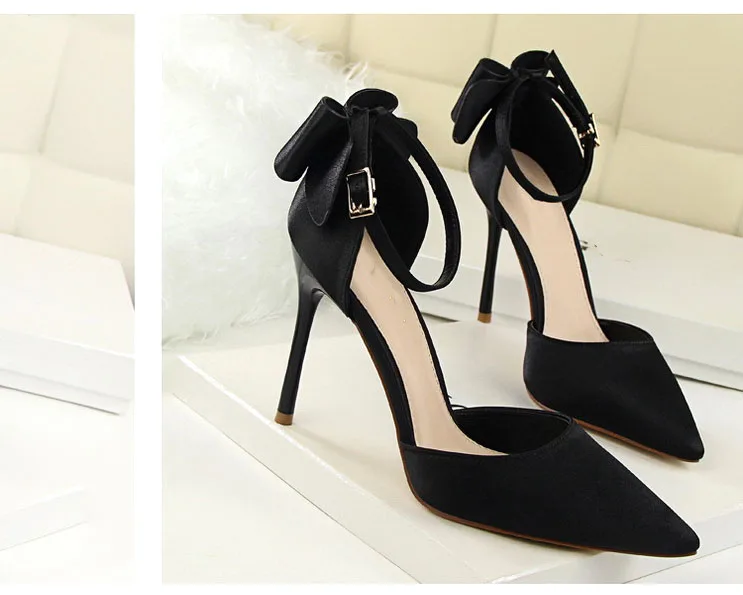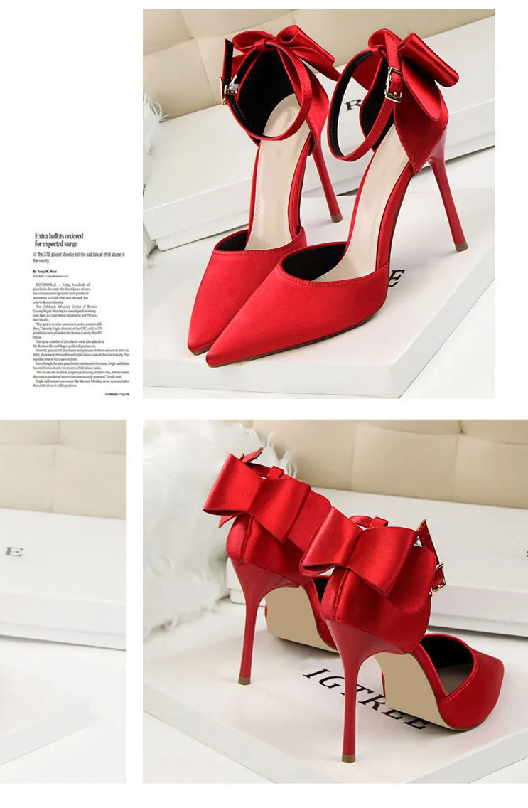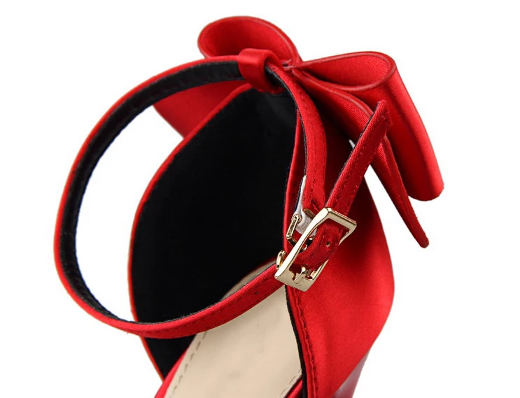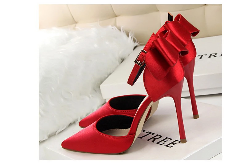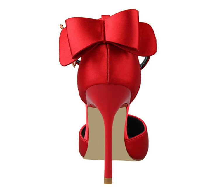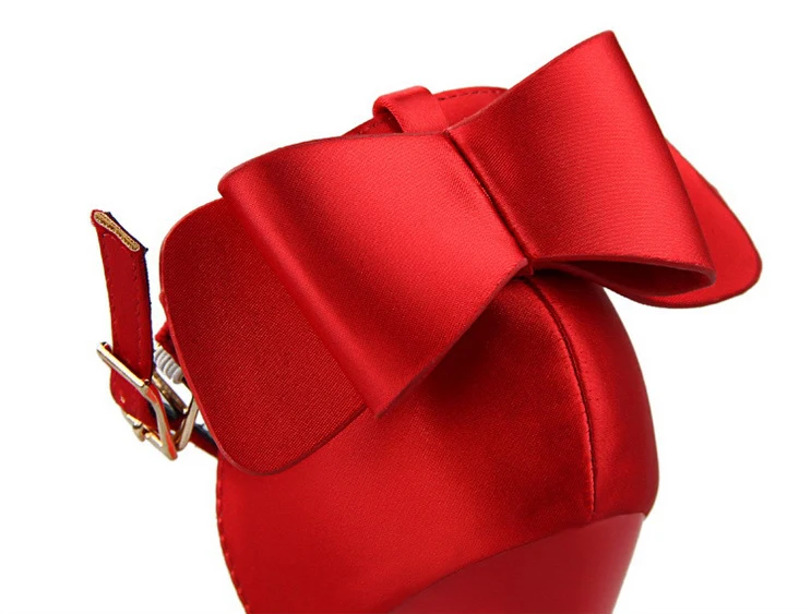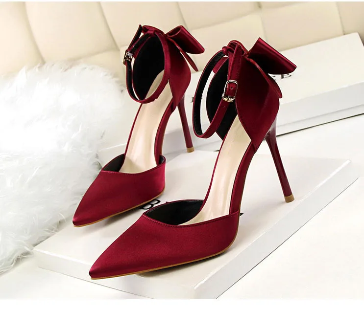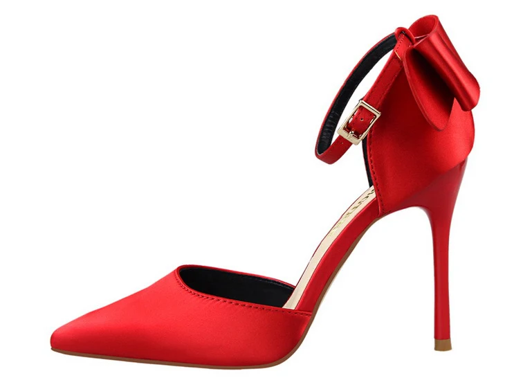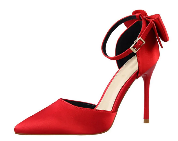 Bow Red High Heels bridal shoes Woman Pumps Satin Heels Wedding Shoes Ladies Red High Heels Shoes 10cm