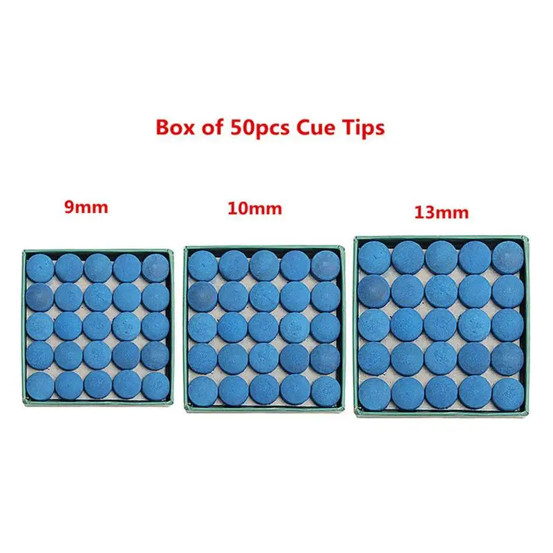 Box Of 50pcs Glue-on Pool Billiards Snooker Cue Tips 9mm 10mm 13mm