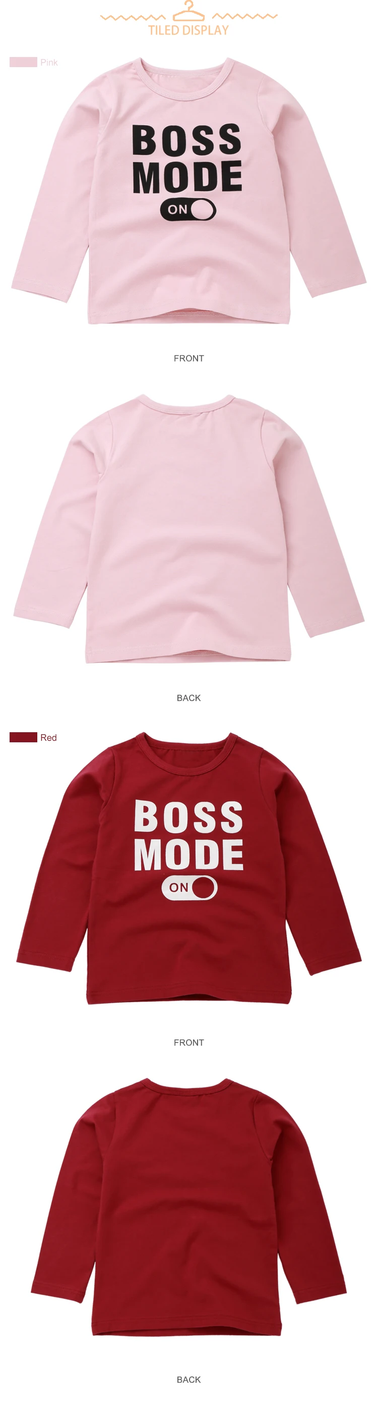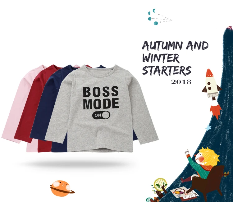 Boys T-Shirt Cute Fun Letter Boss Mode Girls Blouse Autumn Tops Kids Clothes Children Cotton Tshirts Baby Long Sleeve T Shirts