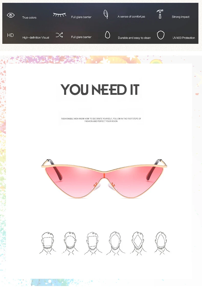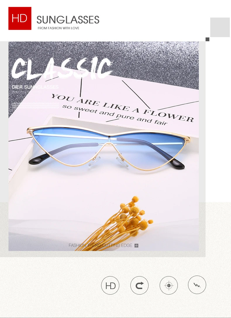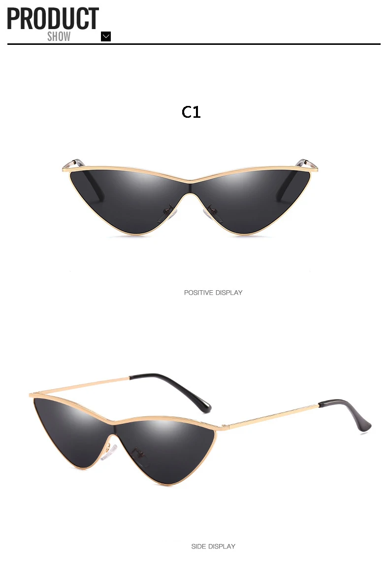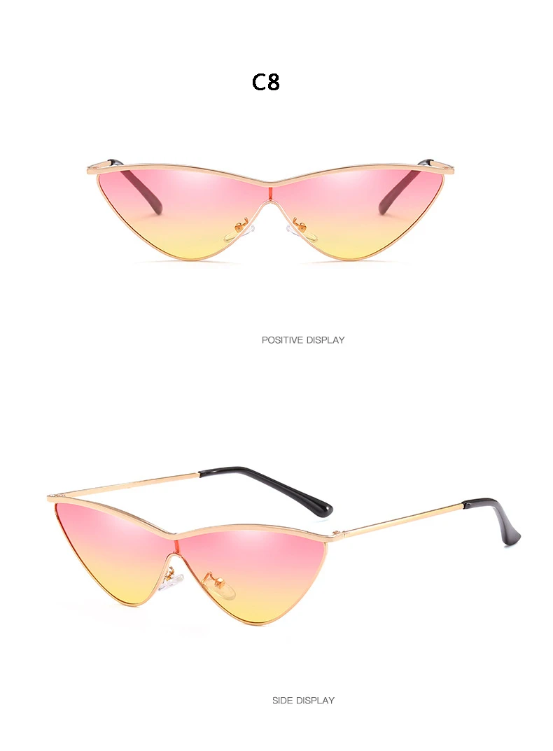 BOYSEEN Vintage Cat Eye Sunglasses Women Men Small Triangle Sun Glasses Fashion Color Female Glasses Metal Frame UV400 66293