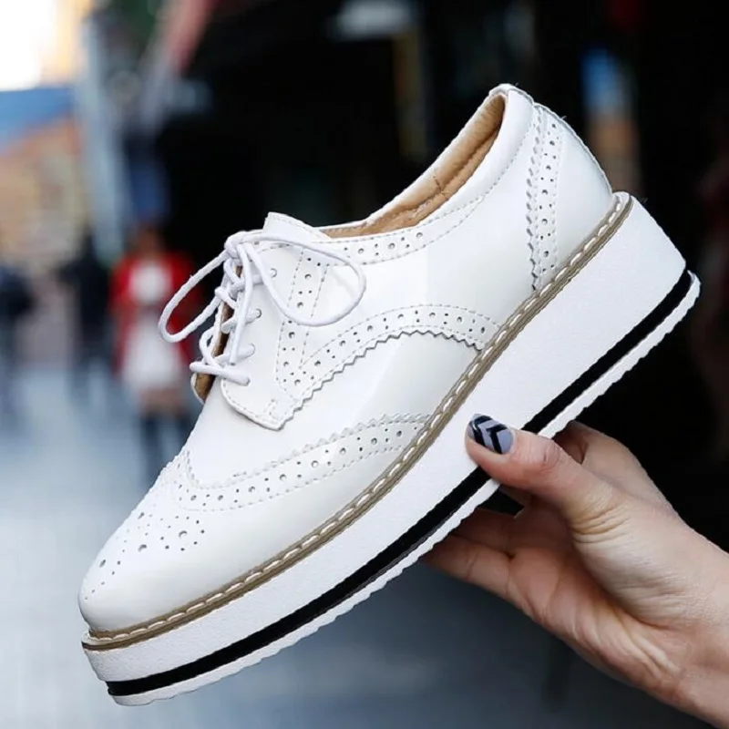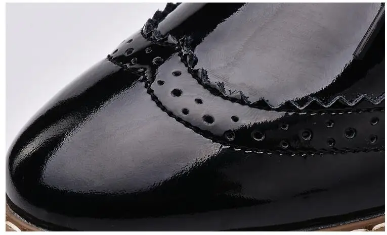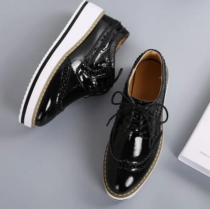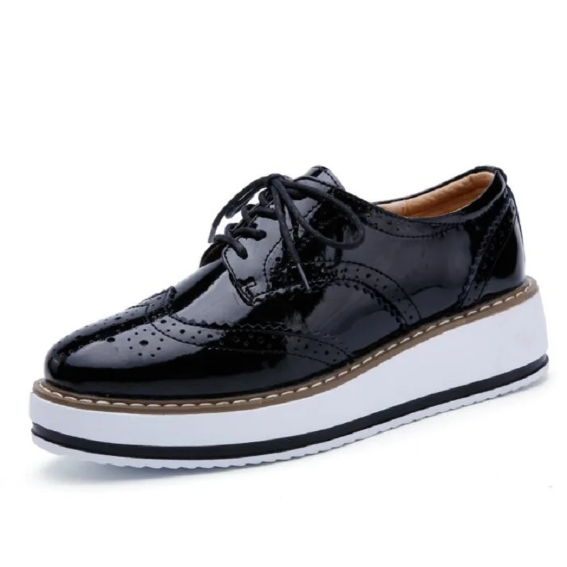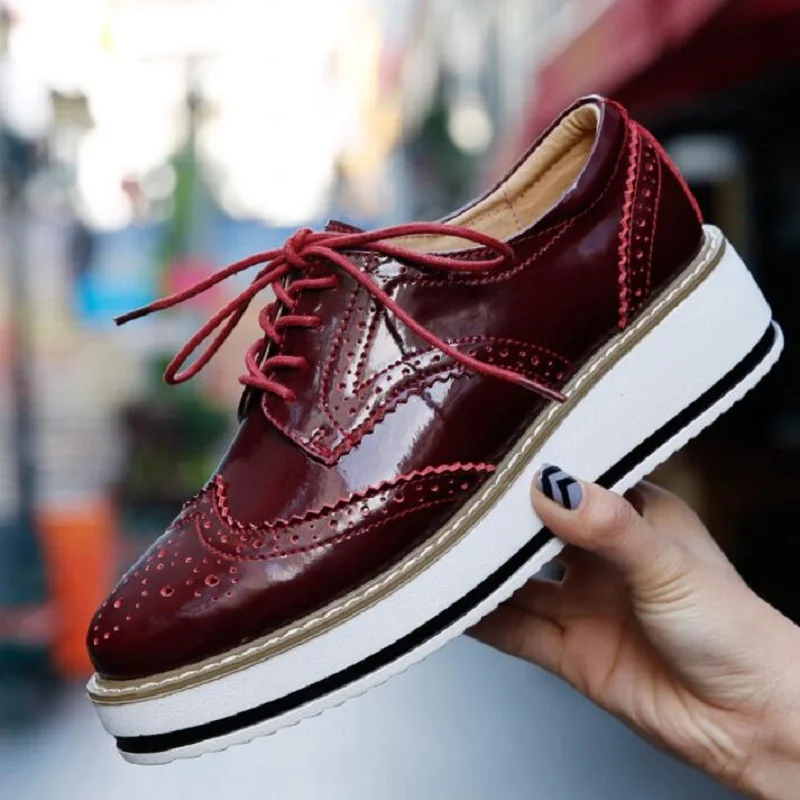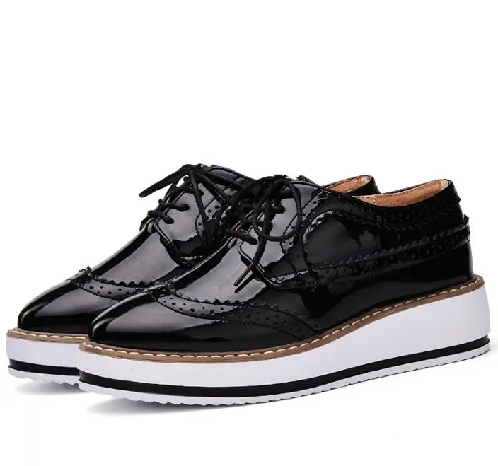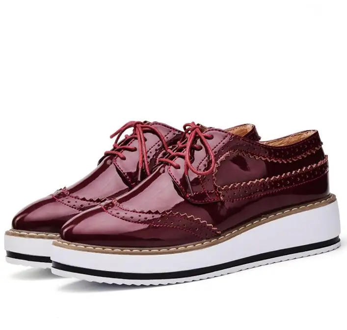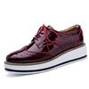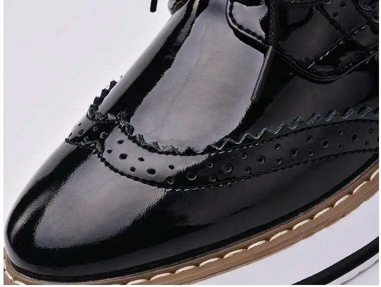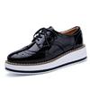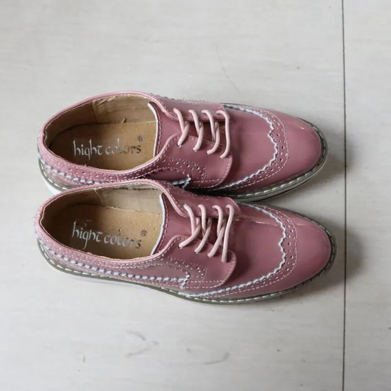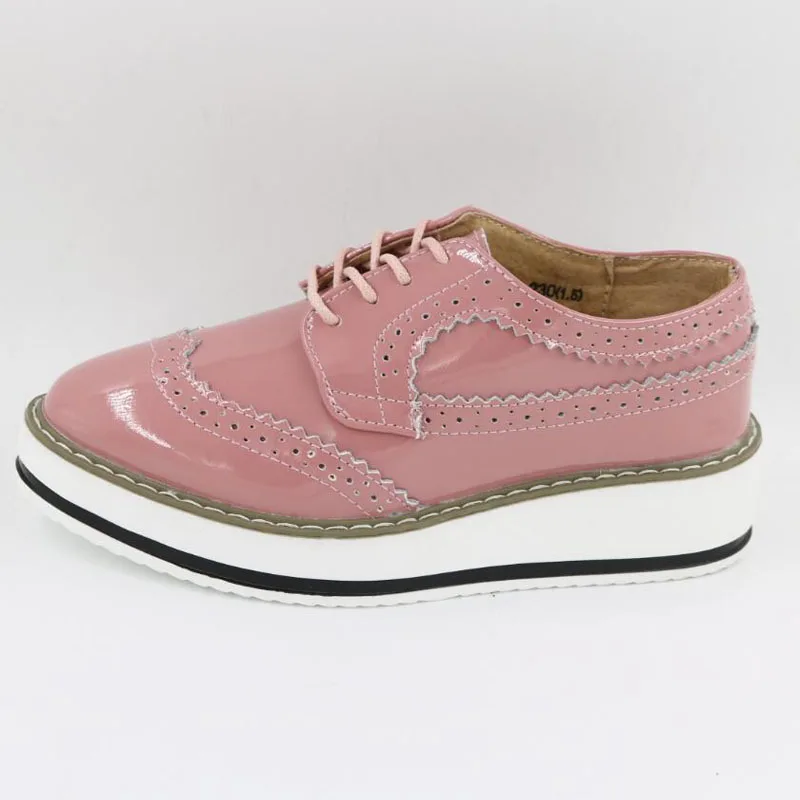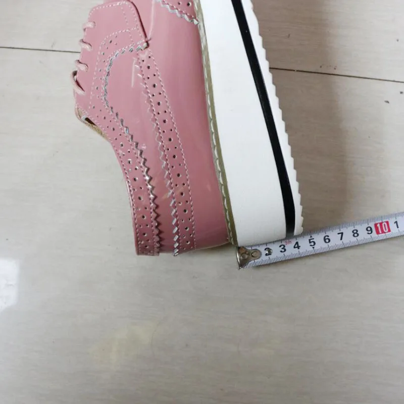 Brand Female Pink Footwear Shoes For Women Creepers Platform Oxfords Brogue Flats Shoes Patent Leather Lace Up Pointed Toe Flat