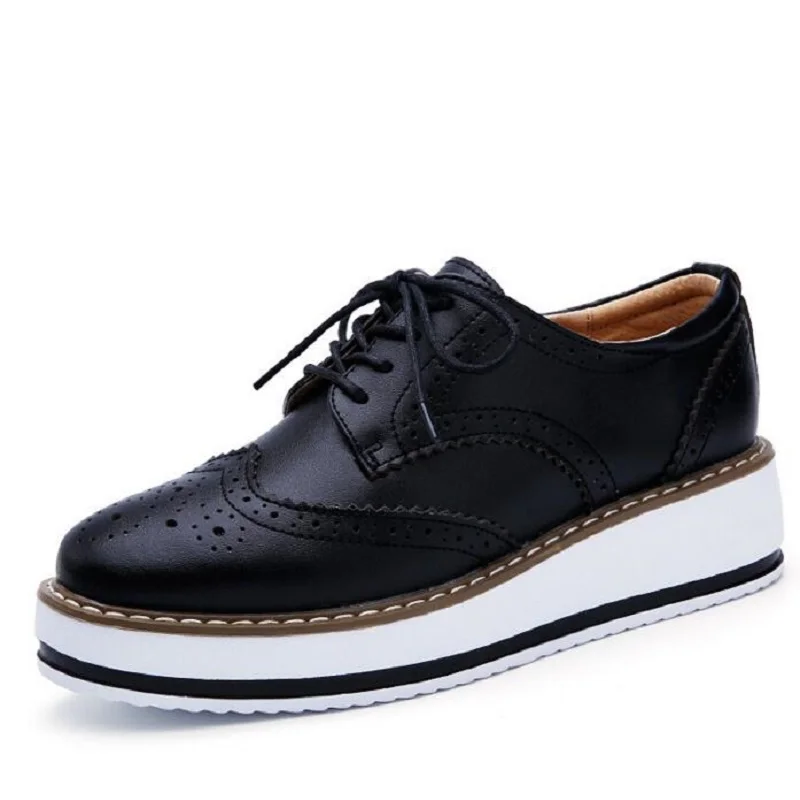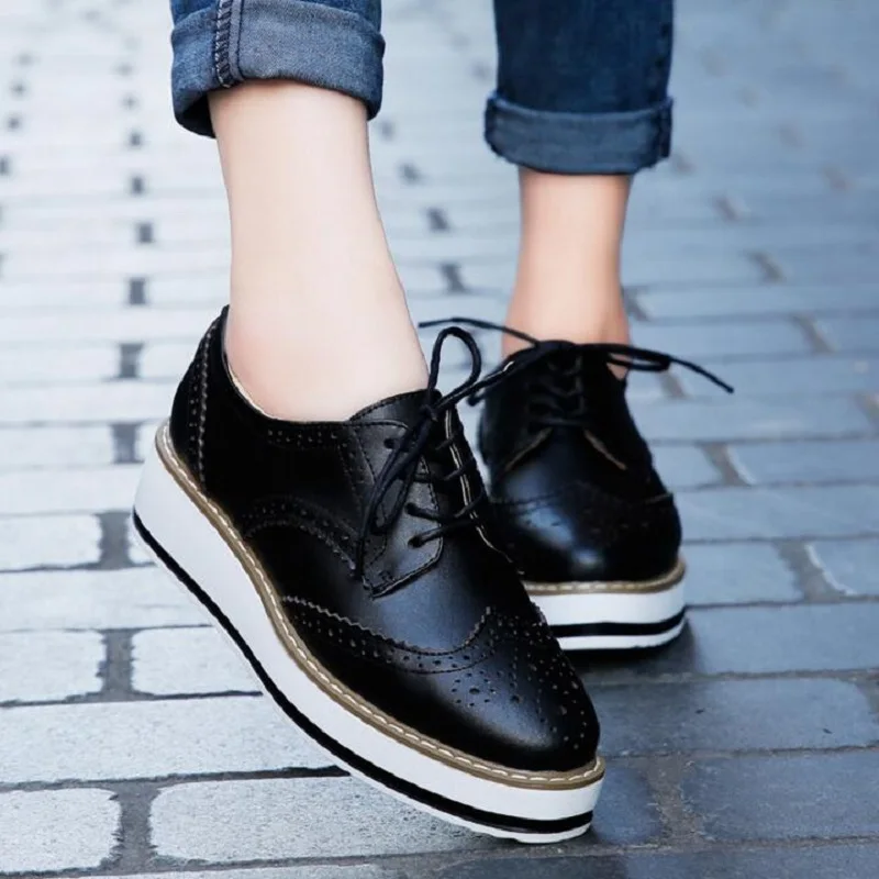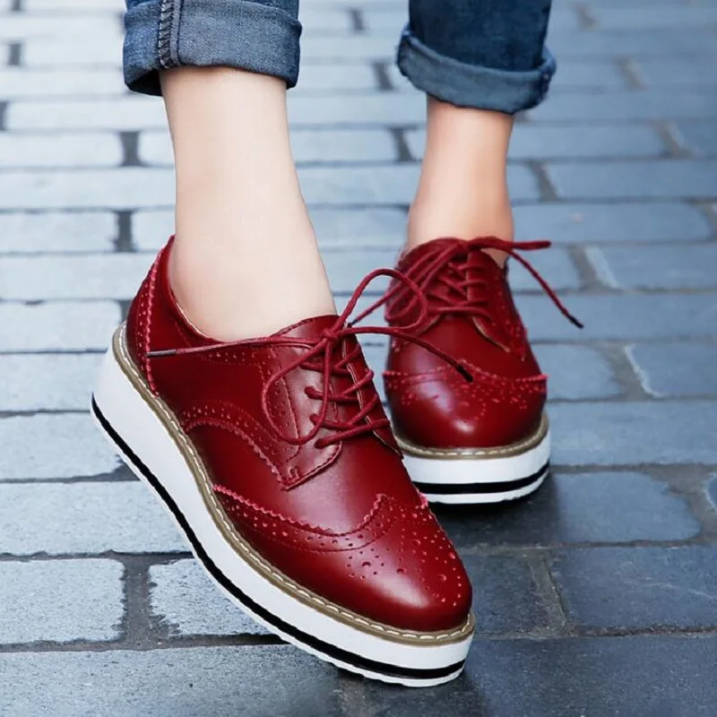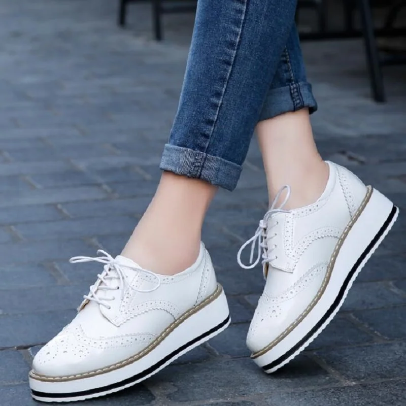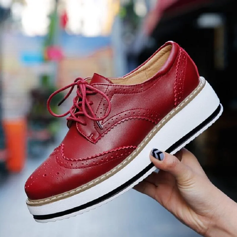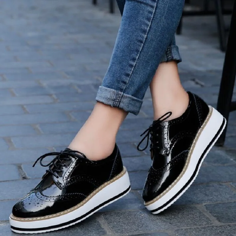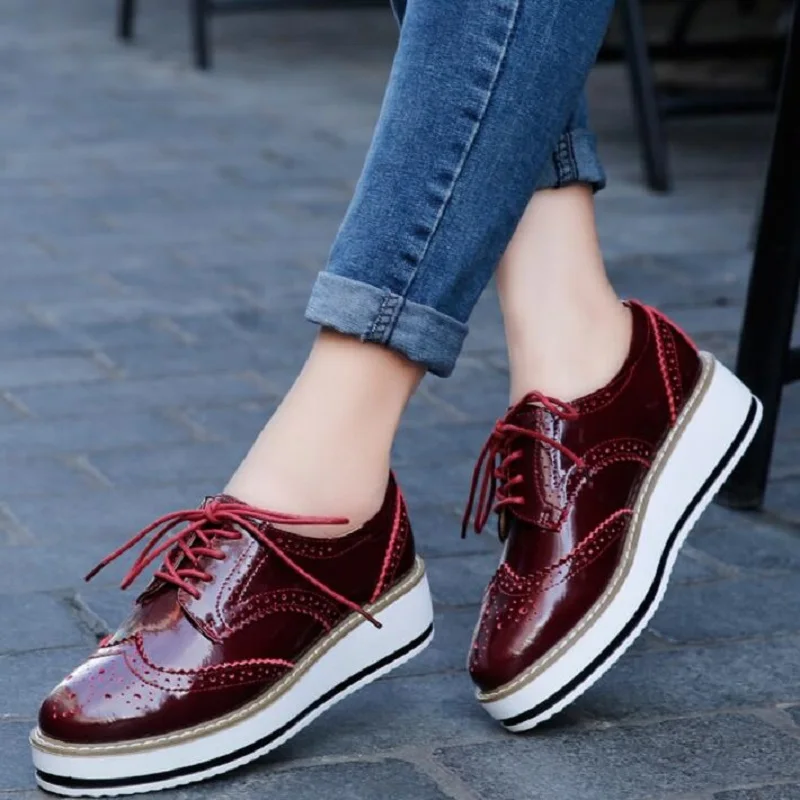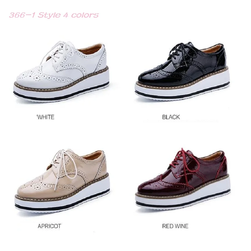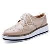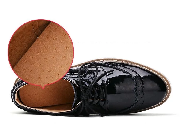 Brand Female Pink Footwear Shoes For Women Creepers Platform Oxfords Brogue Flats Shoes Patent Leather Lace Up Pointed Toe Flat