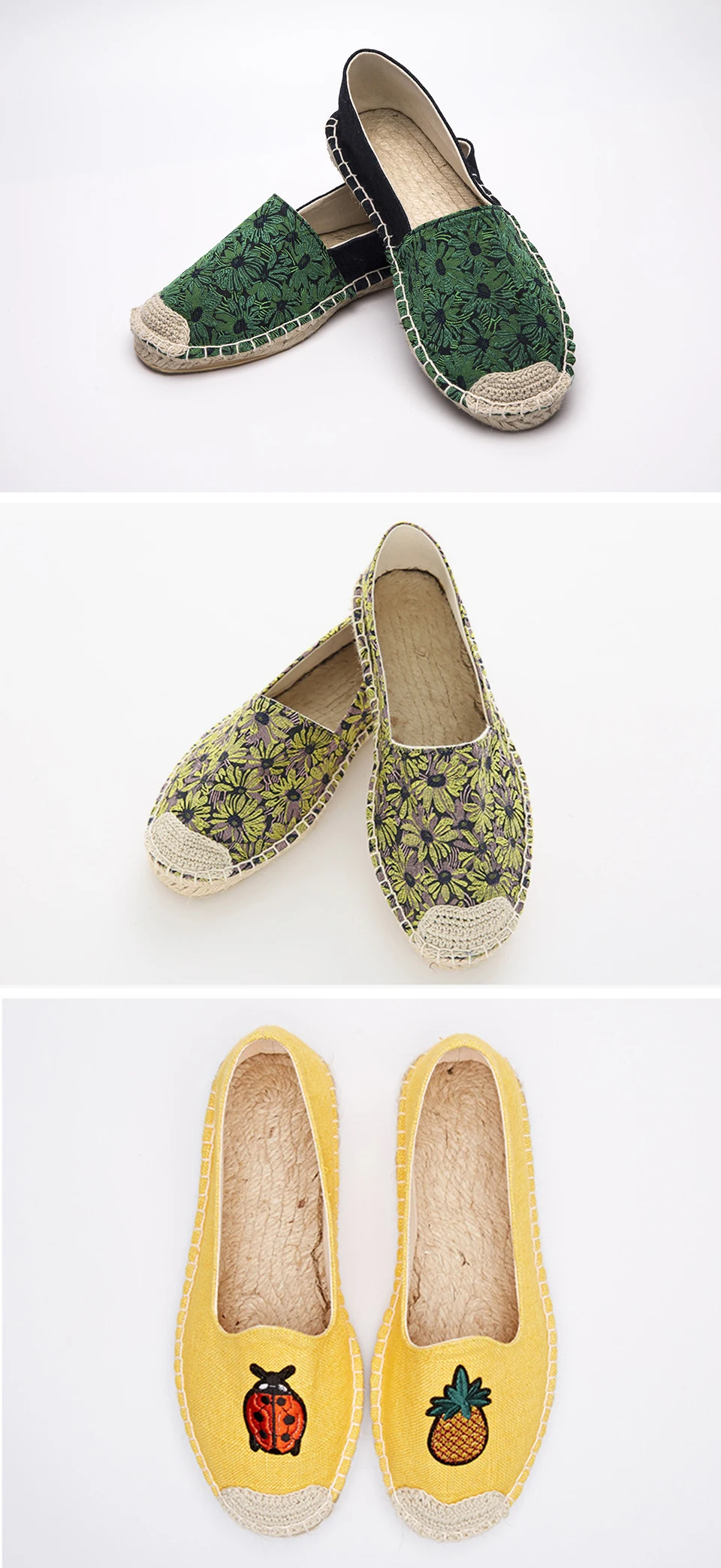 Brand Flat Shoes Women Loafers Embroider Straw Fisherman Shoes Mujer Summer Round Toe Cloth Casual Shoes Woman Plus Size DE
