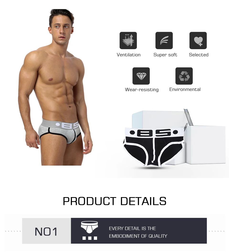 Brand Men Briefs Cotton Spandex Elastic Underpants Sexy breathable Cueca comfortable Men underwear Best Popular Sexy Briefs BS73