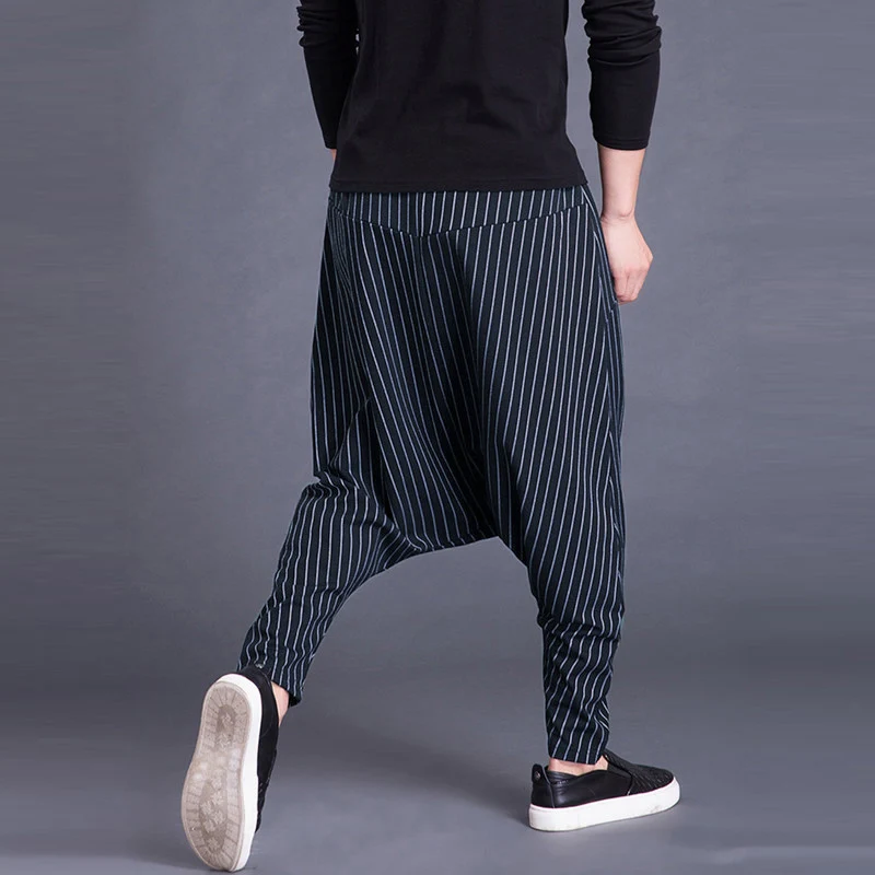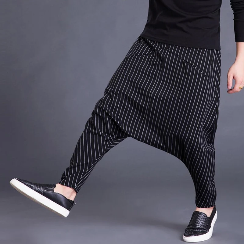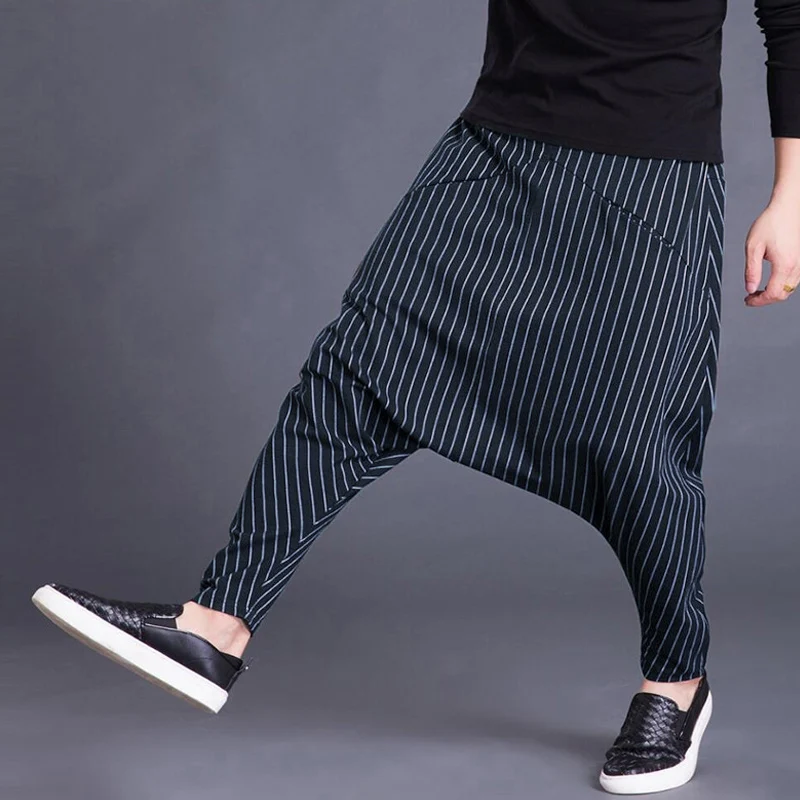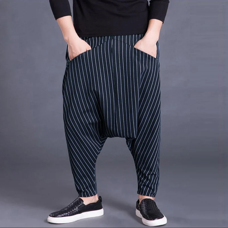 Brand Men’s Pants Hiphop Harem Cross-pants 5XL Drop Crotch Striped Pockets Sweatpants Baggy Fashion Trousers Hombre Pants Punk