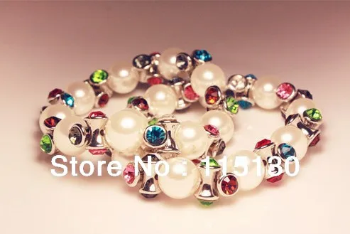 Latest Elegant Stretchy Colorful Rhinestone Pearl Bracelet For Women Korean Style Love Charm Bracelets Fashion Jewelry Wholesale