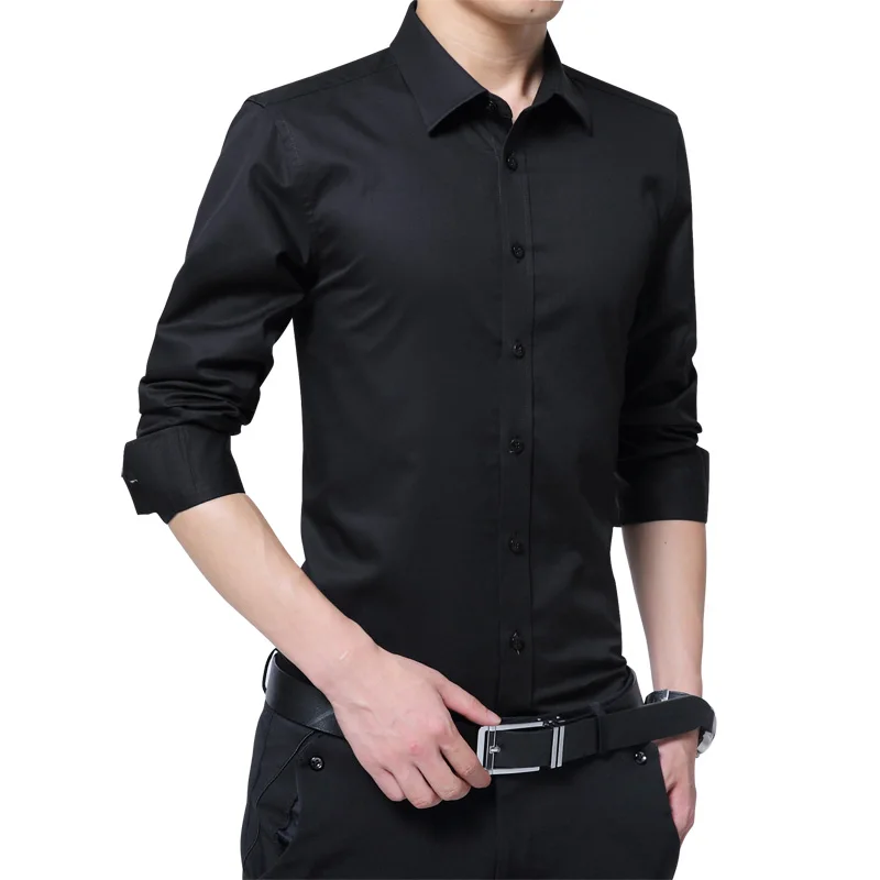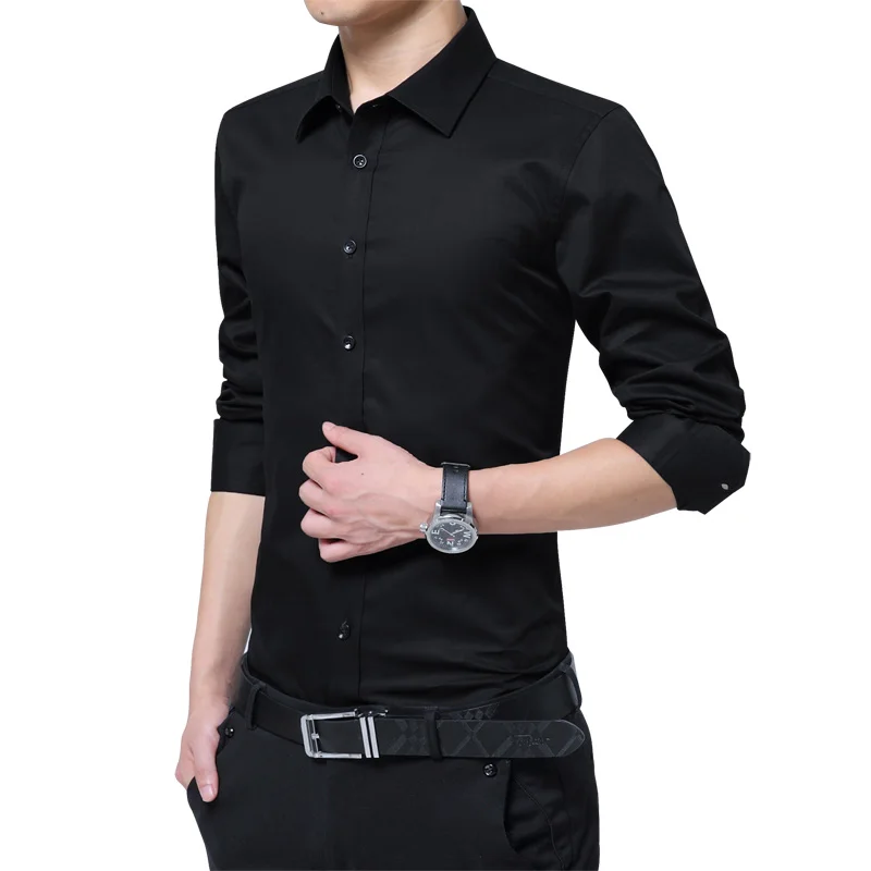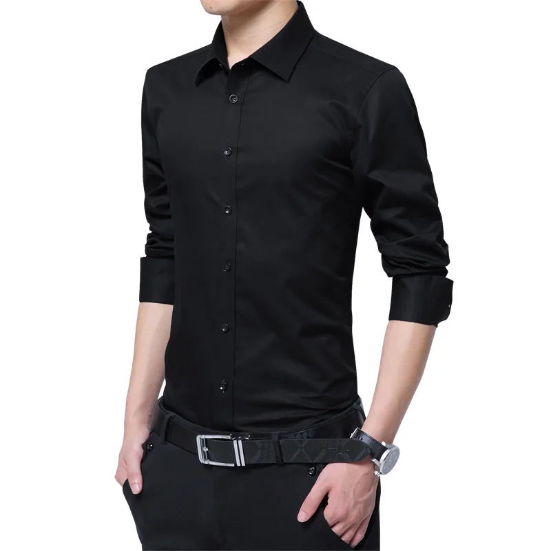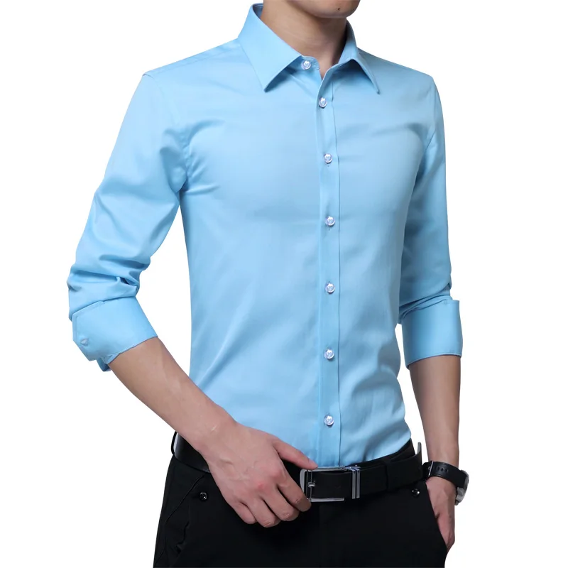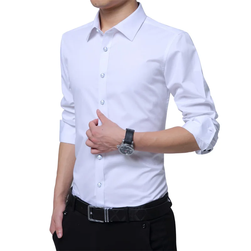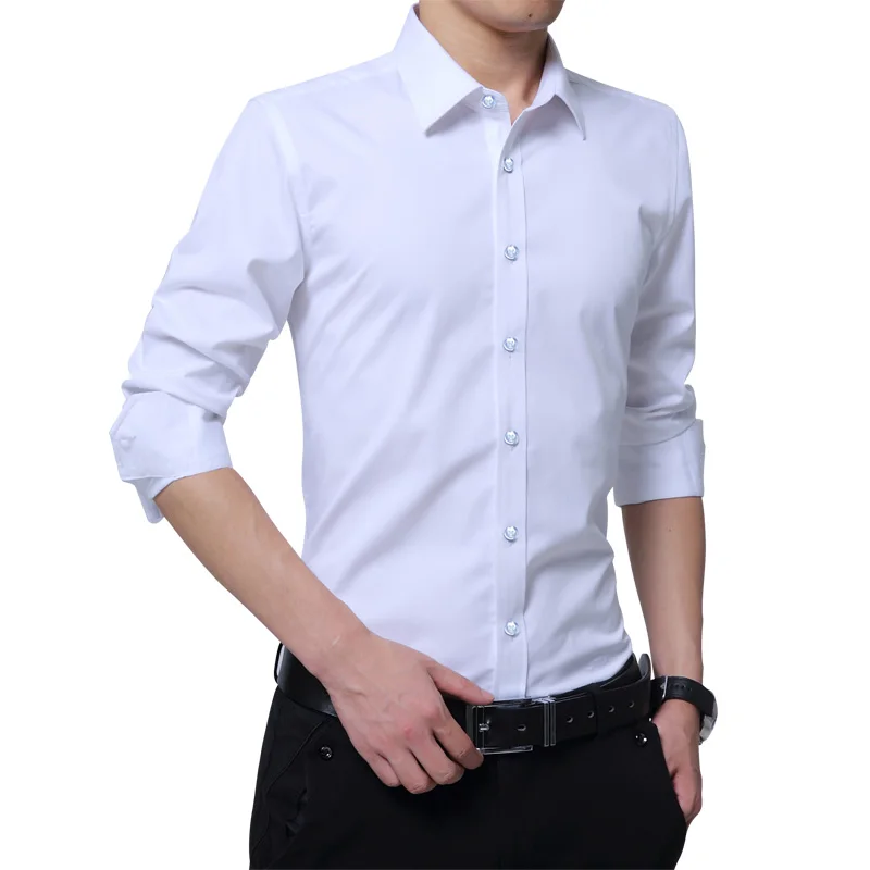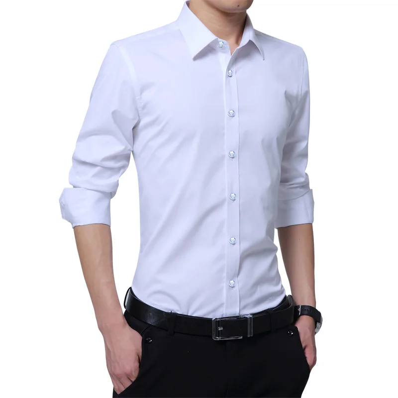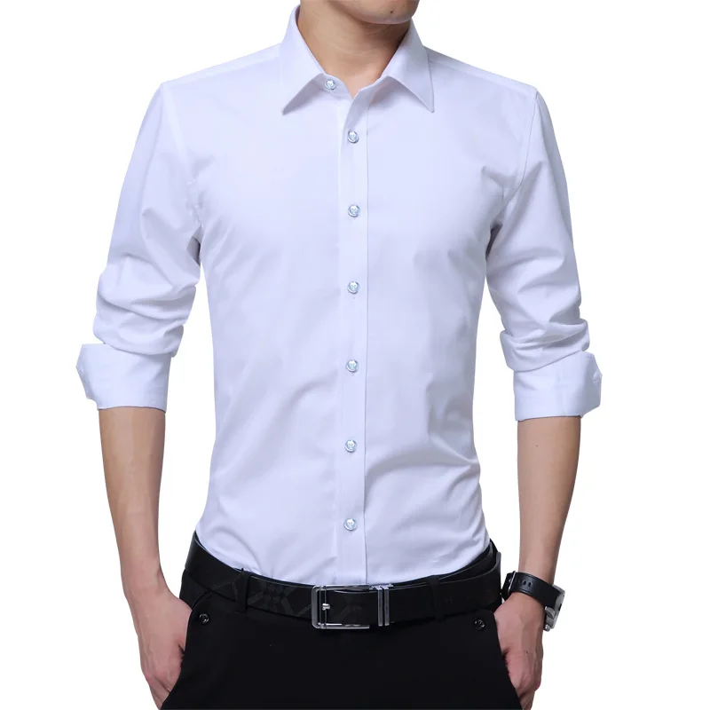 Brand New Fashion Clothing Mens Shirts Casual Slim Fit Business Dress Shirt Solid Color White Long Sleeve Shirts For Men M-5XL