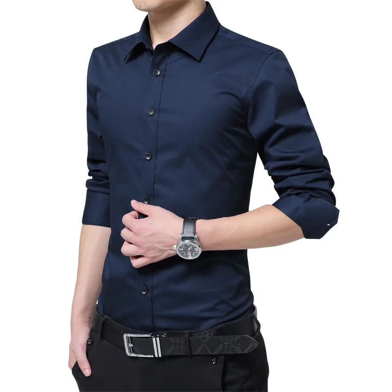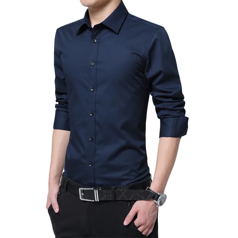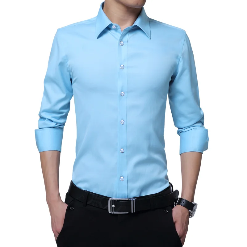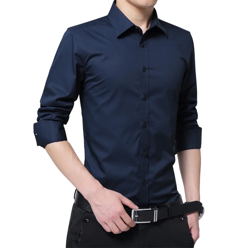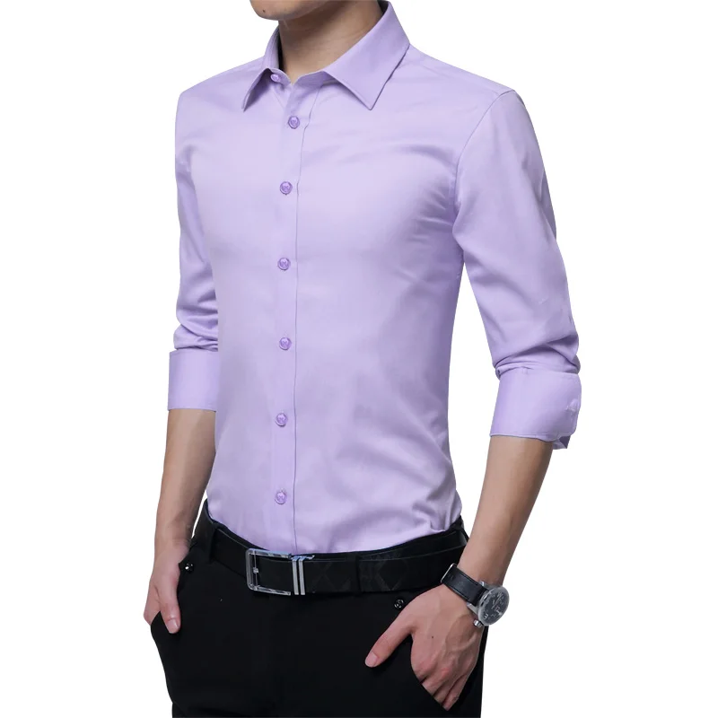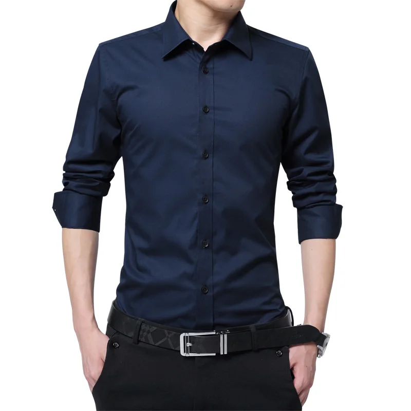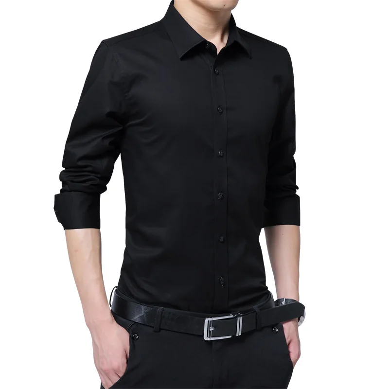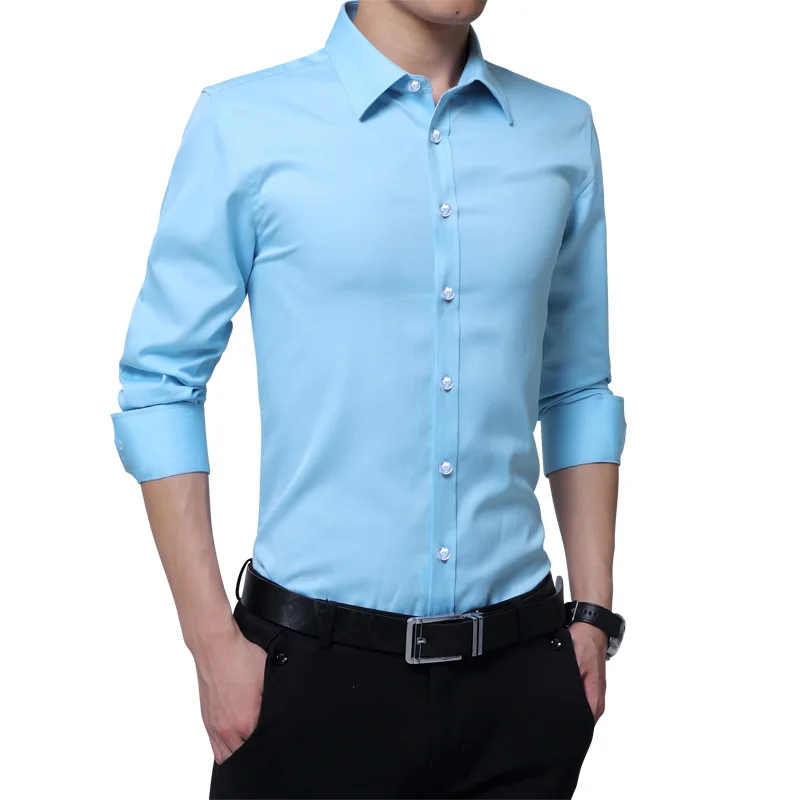 Brand New Fashion Clothing Mens Shirts Casual Slim Fit Business Dress Shirt Solid Color White Long Sleeve Shirts For Men M-5XL