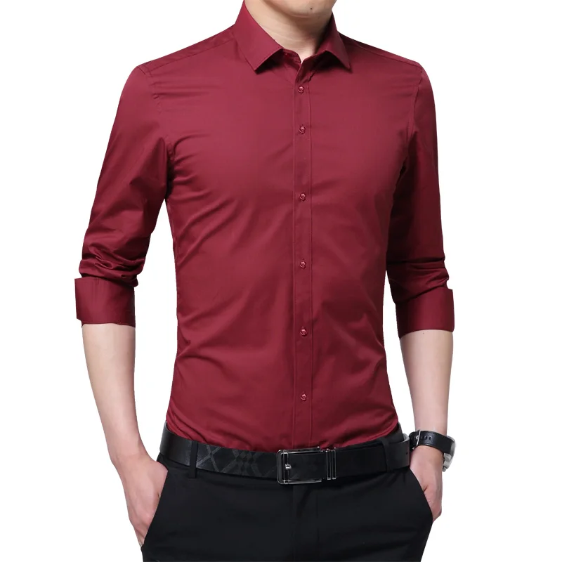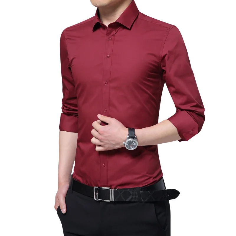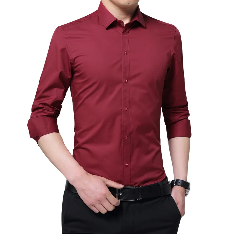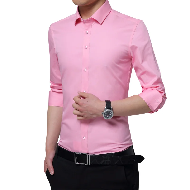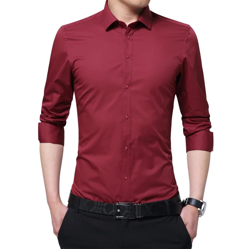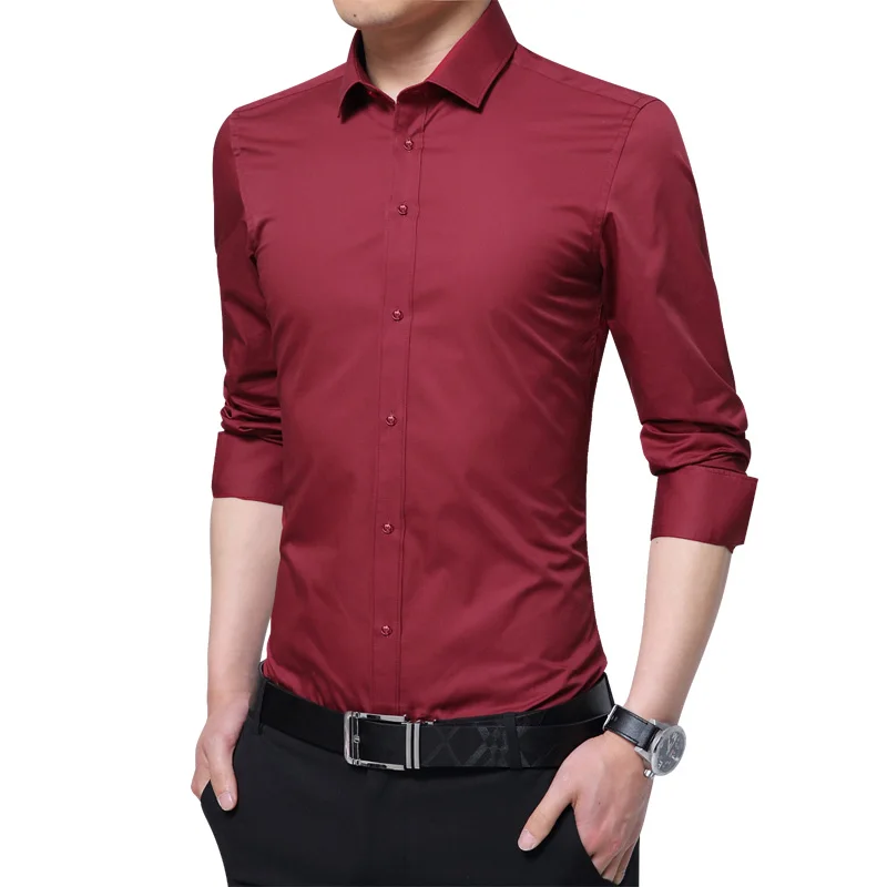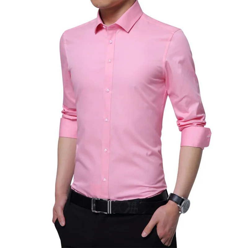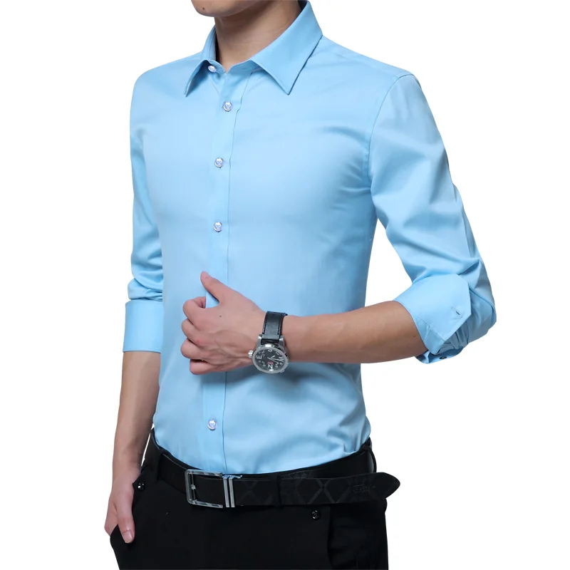 Brand New Fashion Clothing Mens Shirts Casual Slim Fit Business Dress Shirt Solid Color White Long Sleeve Shirts For Men M-5XL