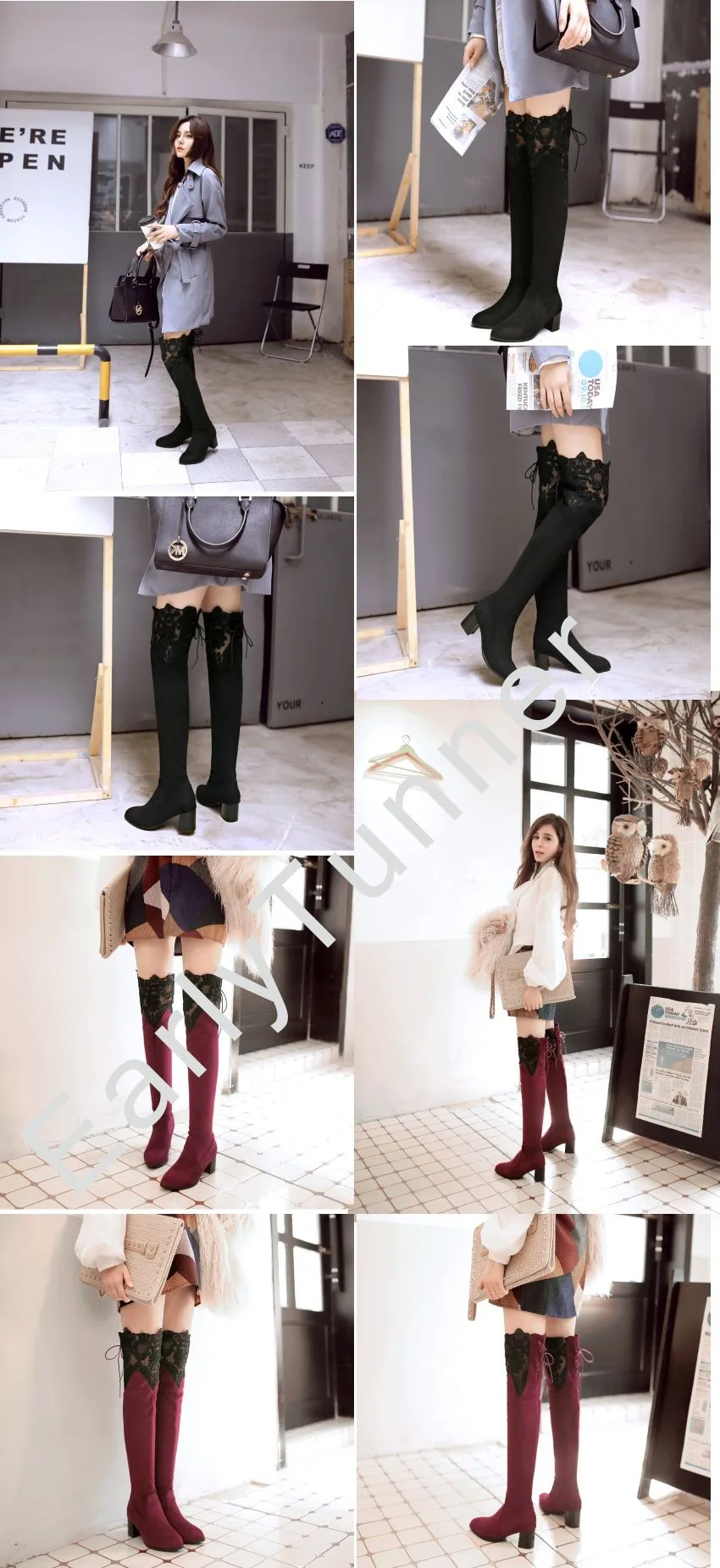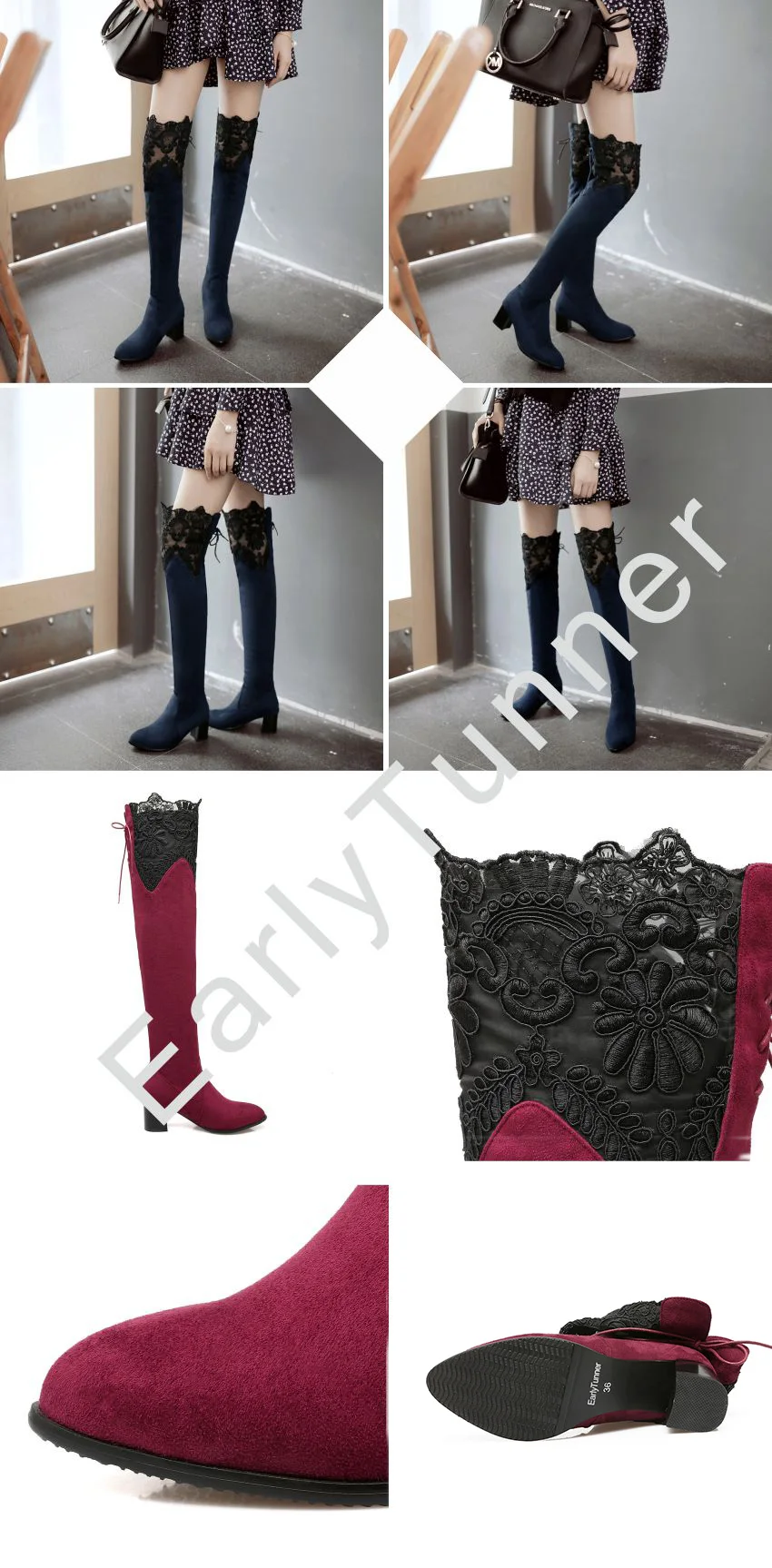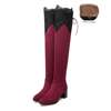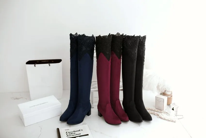 Brand New Sexy Lace Women Thigh High Riding Boots Black Red Blue Lady Over the Knee Shoe Chunky Heel ET07 Plus Big size 32 46 10