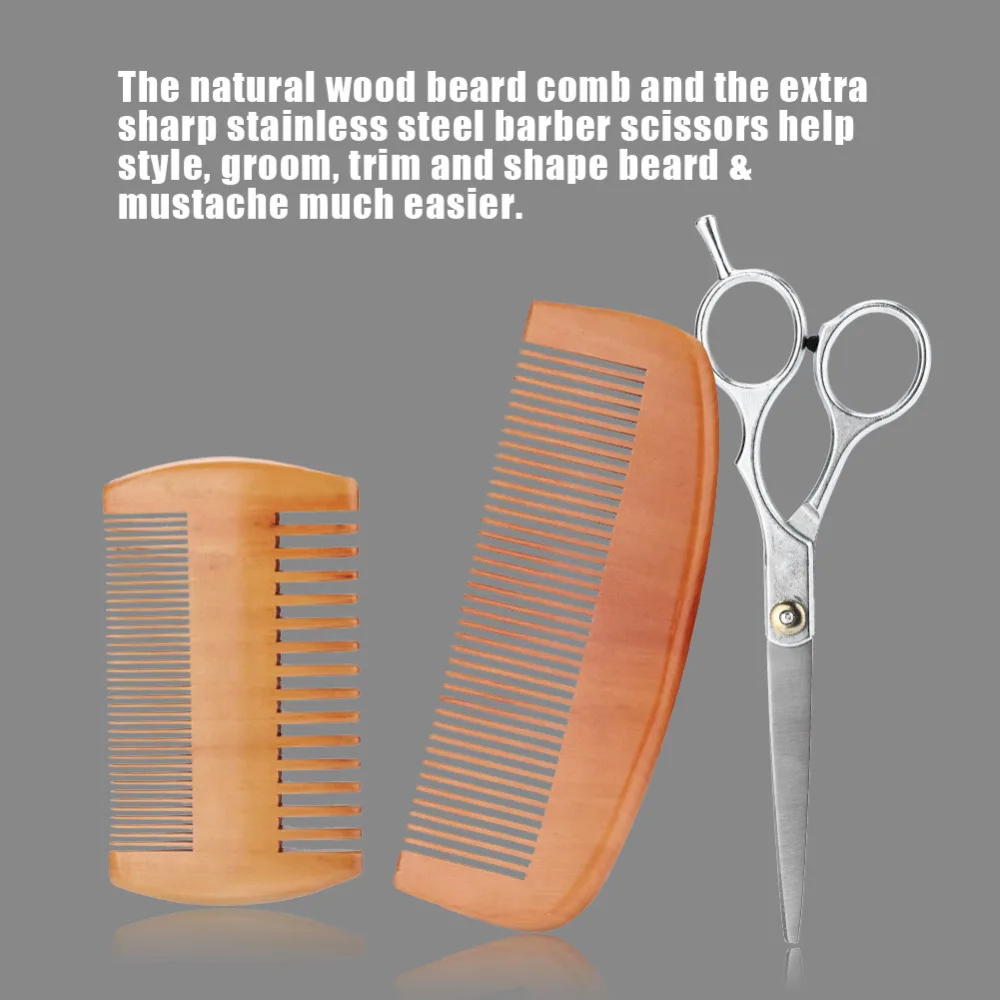 4. The natural wood beard comb and the extra sharp stainless steel barber scissors help style,