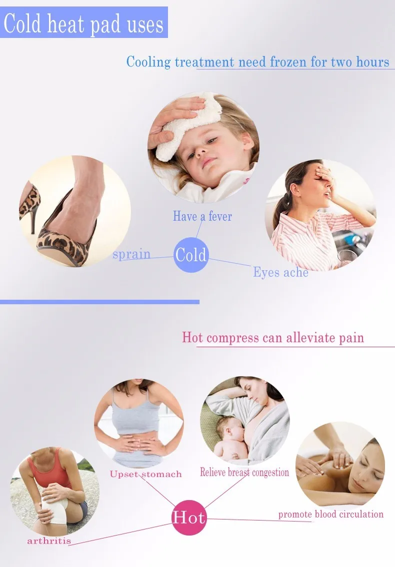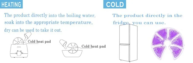 The purple pad can be heated in boiling water. When you feel Breast ache, hot compress using the purple pad will ease the pain. And the hot compressing before sucting breast milk, will make the Breast milk sucting out easier. The pad can be made cold in frige, when headache and got a fever the pad can be used also.