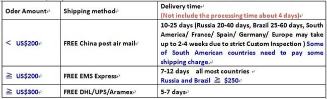 3.We are not responsible for any local custom duty or tax. When the package stuck in the custom, the buyer is responsible for the clearance. In order to ensure you receive your order with lower tax, we’ll declare it as a “gift” with a lower value, if any import charges or fees are the buyer’s responsibility.
