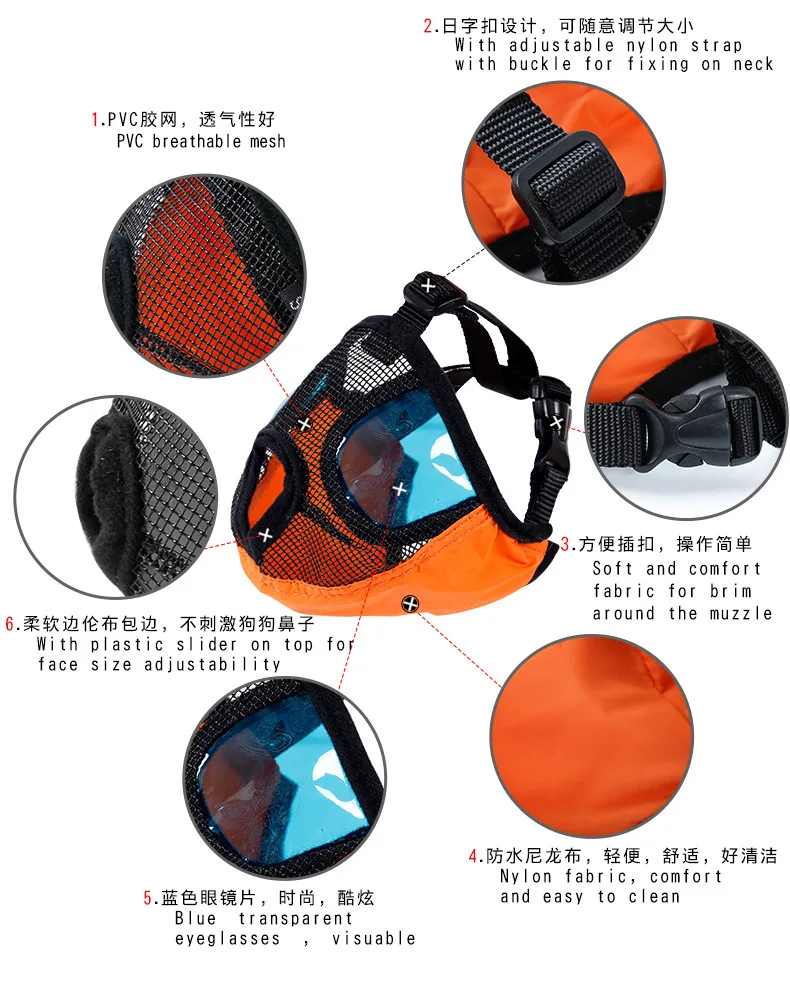 Place the mouth on the pet cover, adjust the side on top, place the side of the mesh underneath, and buckle the plastic buckle behind the neck of the pet to adjust to the appropriate length