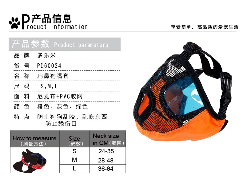 Using a soft ruler to measure pet mouth circumference (central circumference of mouth) does not need to be too tight, it is advisable to put a finger, according to the mouth around the size of the mouth cover selected.