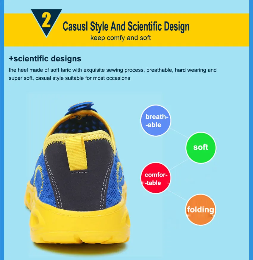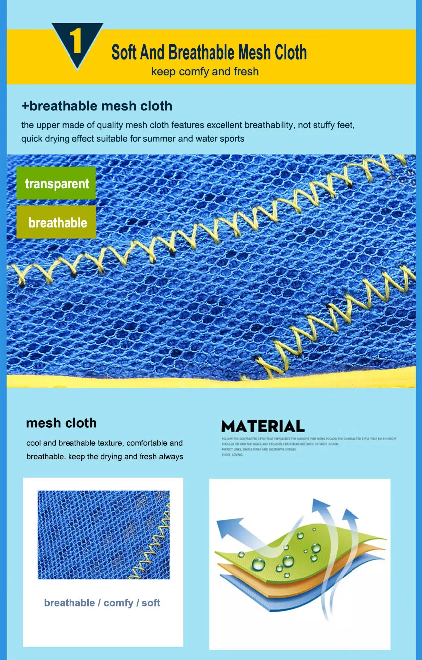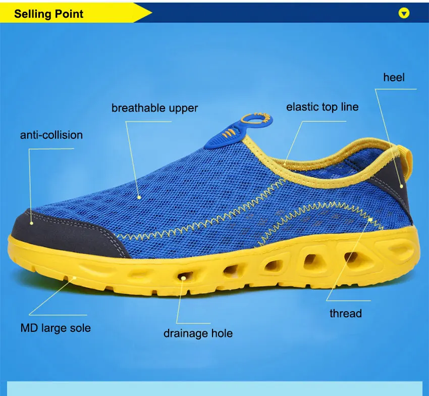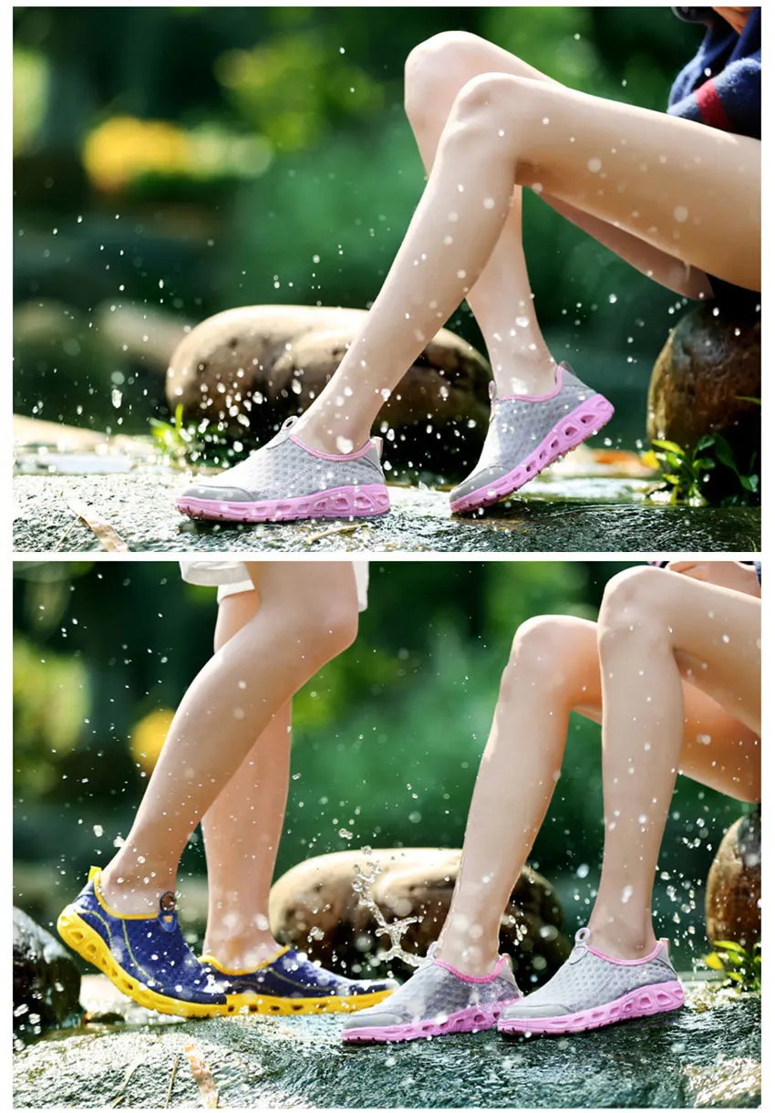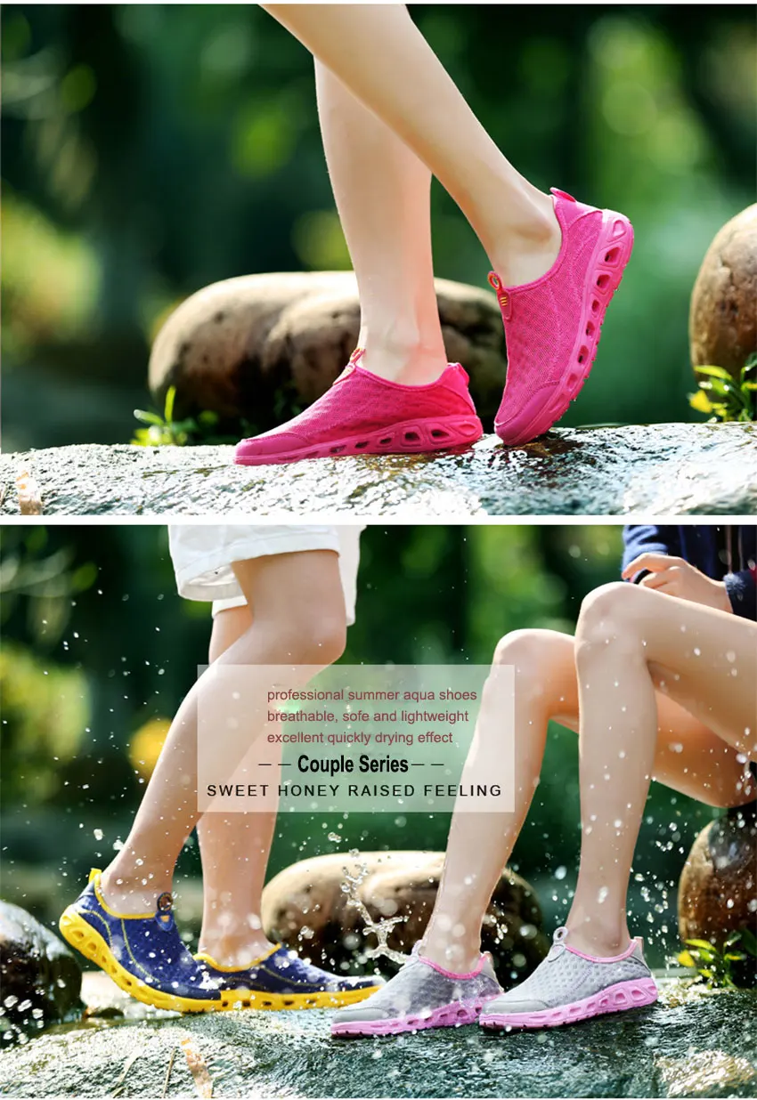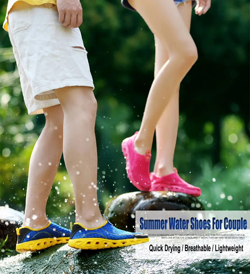 Water shoes features breathable, soft and quick drying. The correct choice of wearing the aqua shoes on water sports, hot beaches or camping. Also as a substitute for indoor shoes, casual shoes or walking shoes due to the light and comfortable.