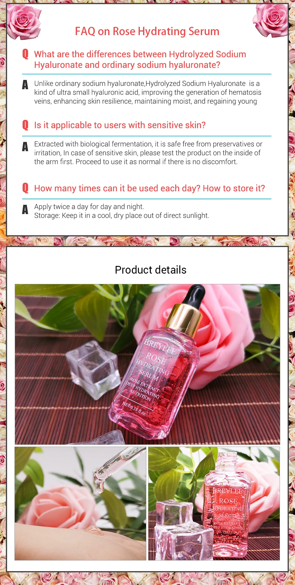 BREYLEE Rose nourishing serum deep hydrating face skin care whitening soothing 100% natural ingredient anti-aging wrinkle beauty 15ml*1bottle