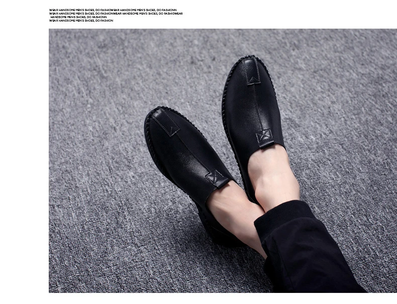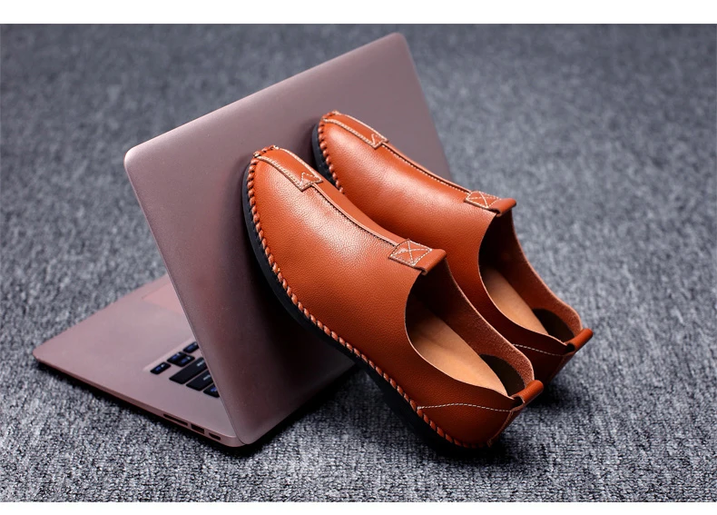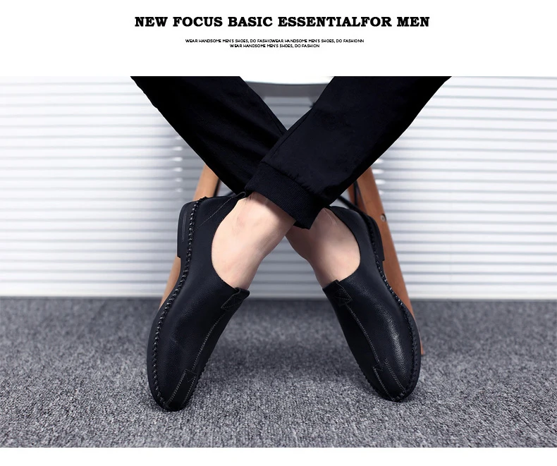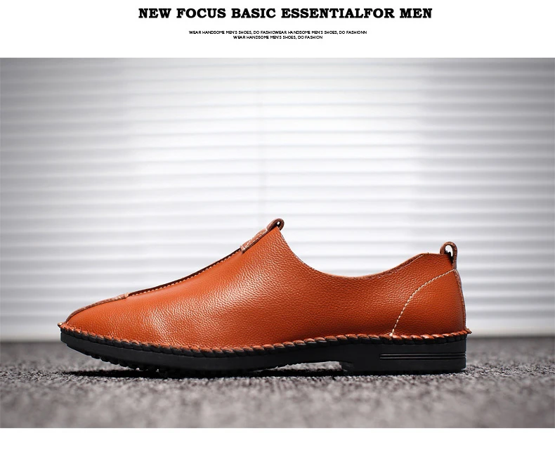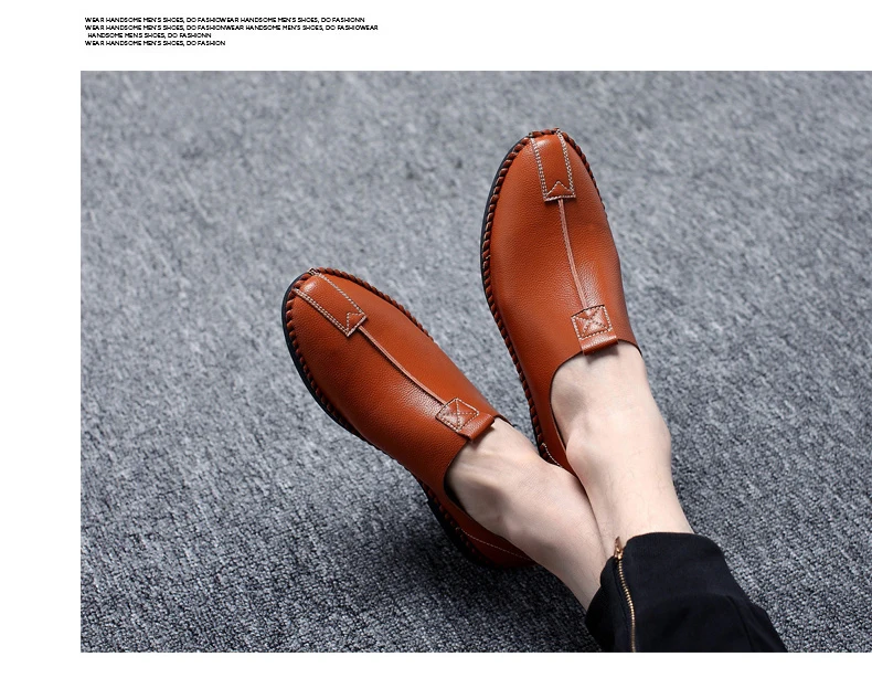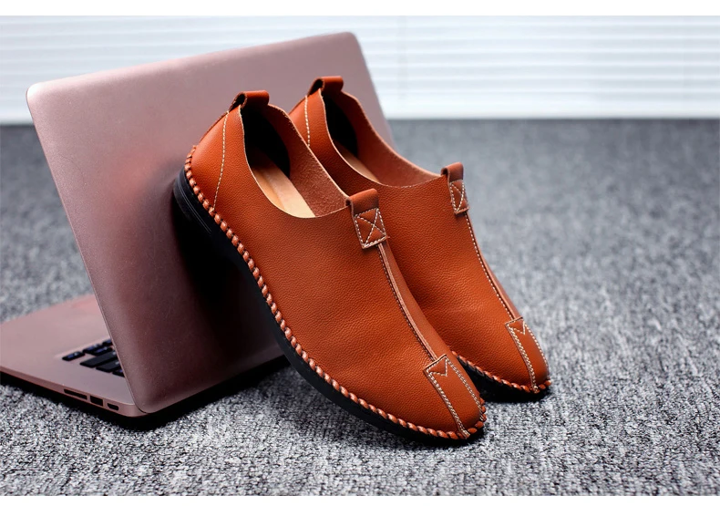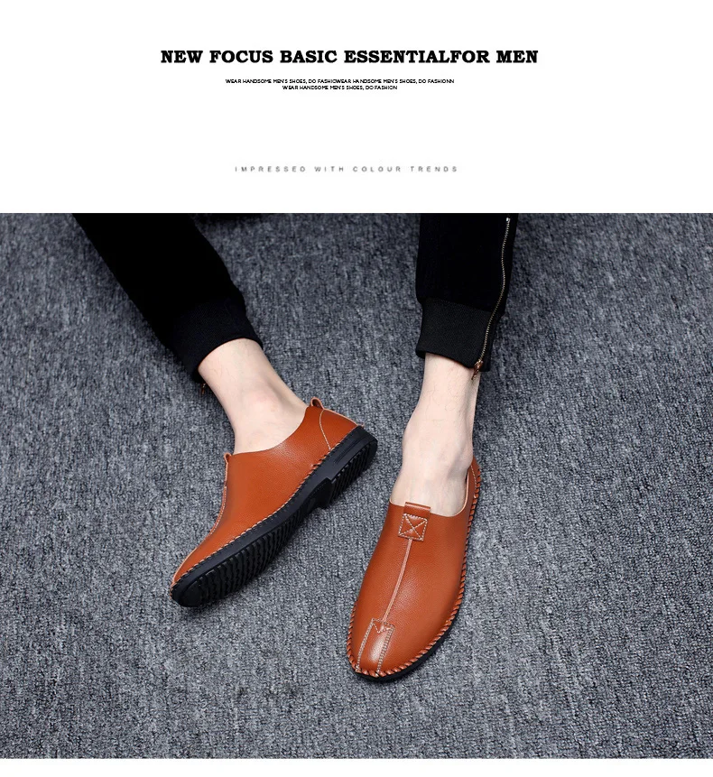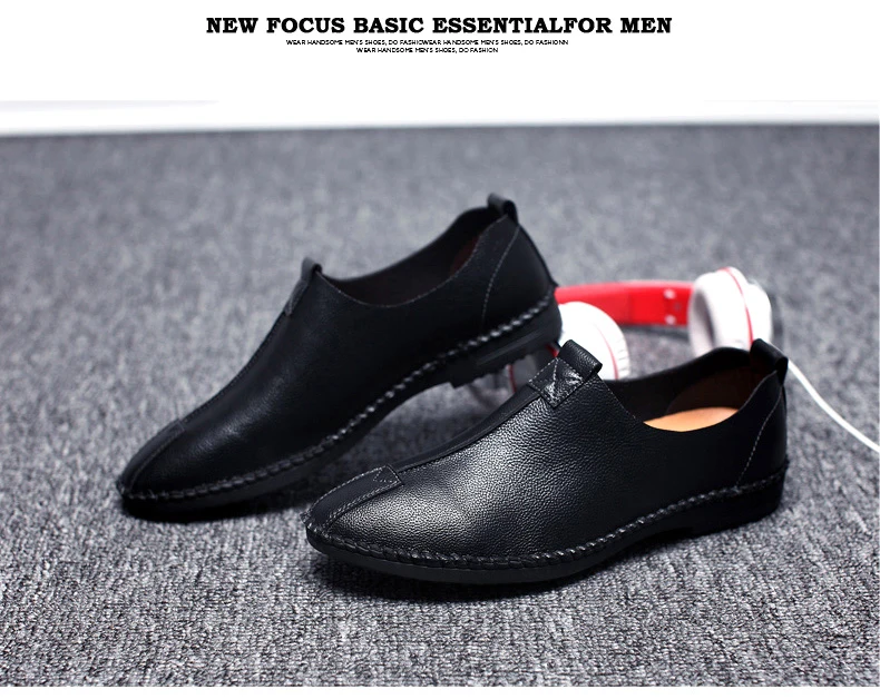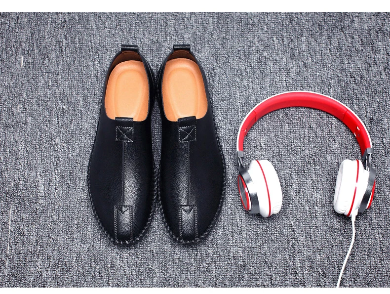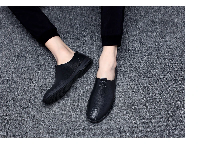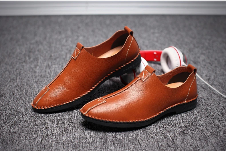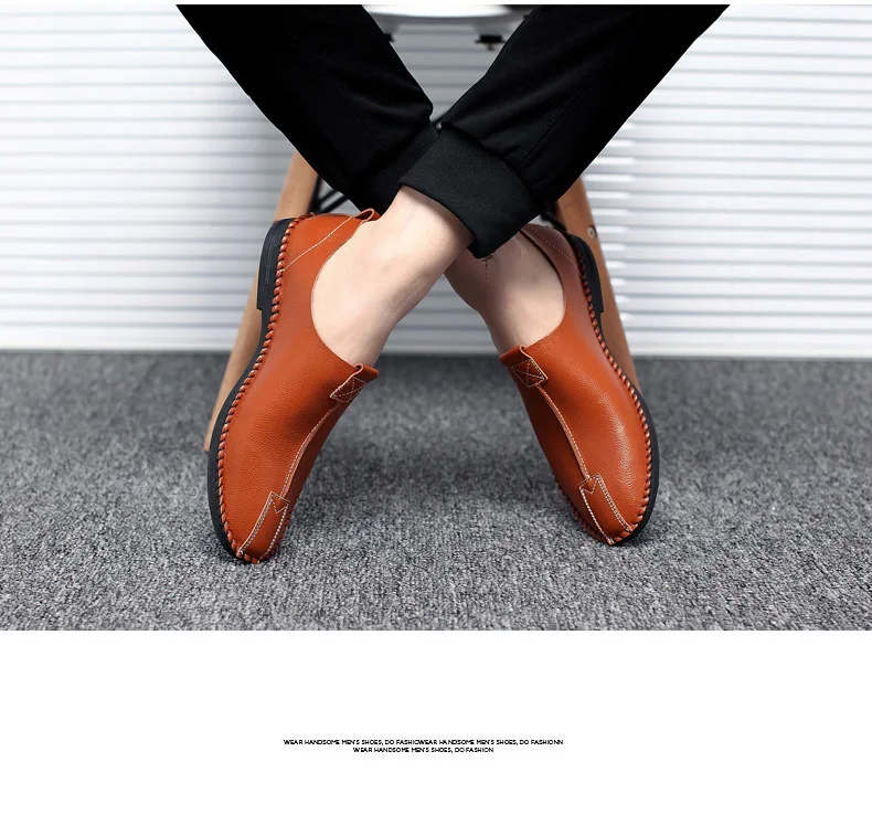 British Men Sewing Outdoor Shoes Flats Breathable Leather Walking Shoes Male Comfortable Non-Slip Shoes Black Brown New Footwear