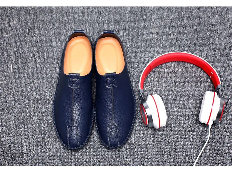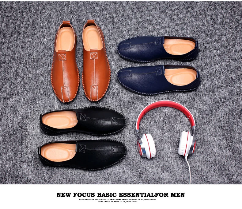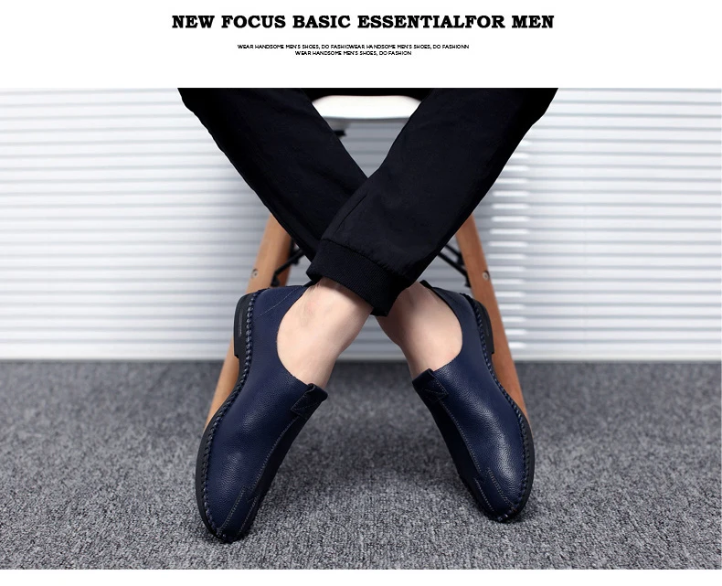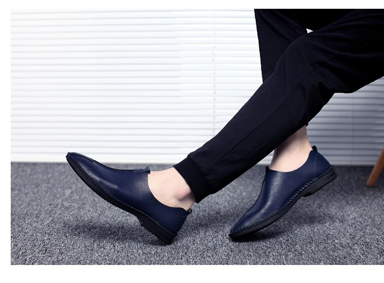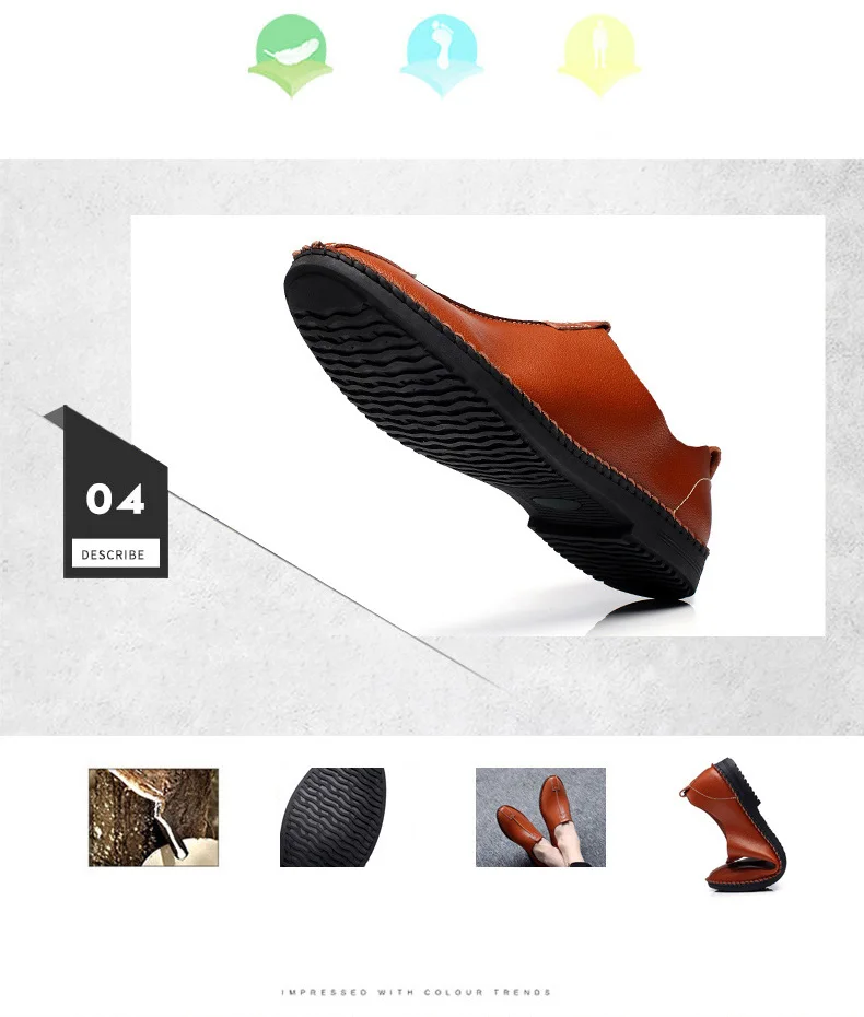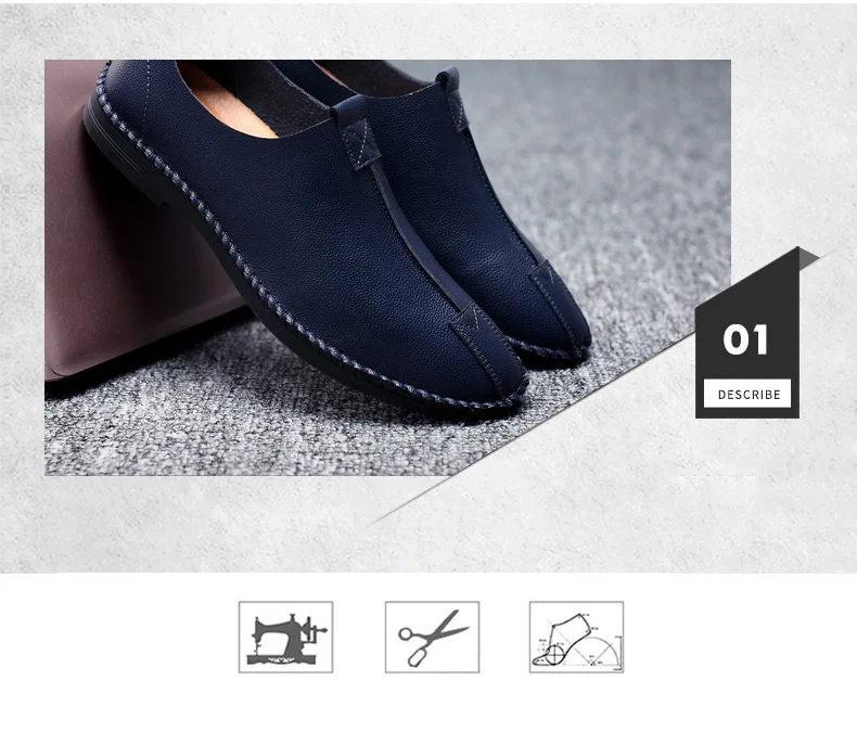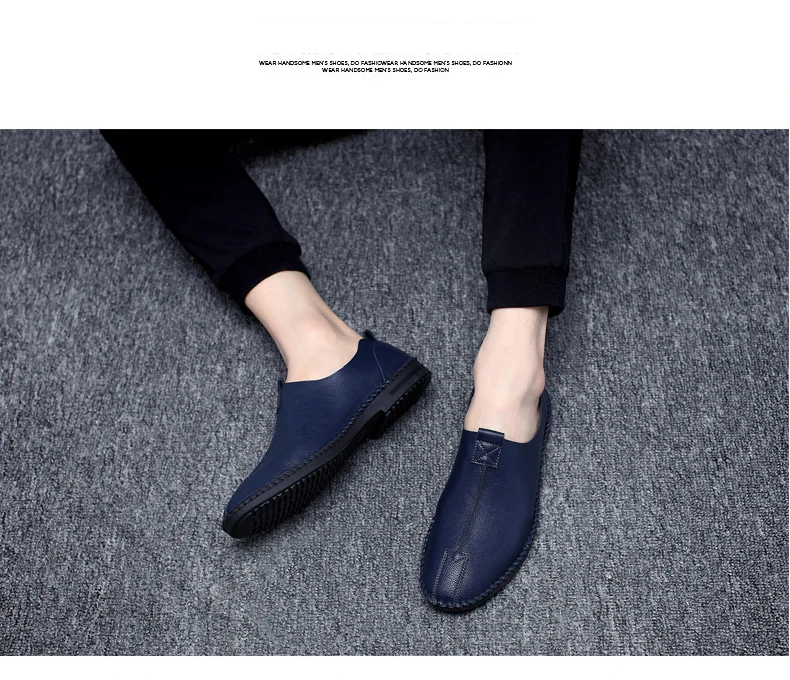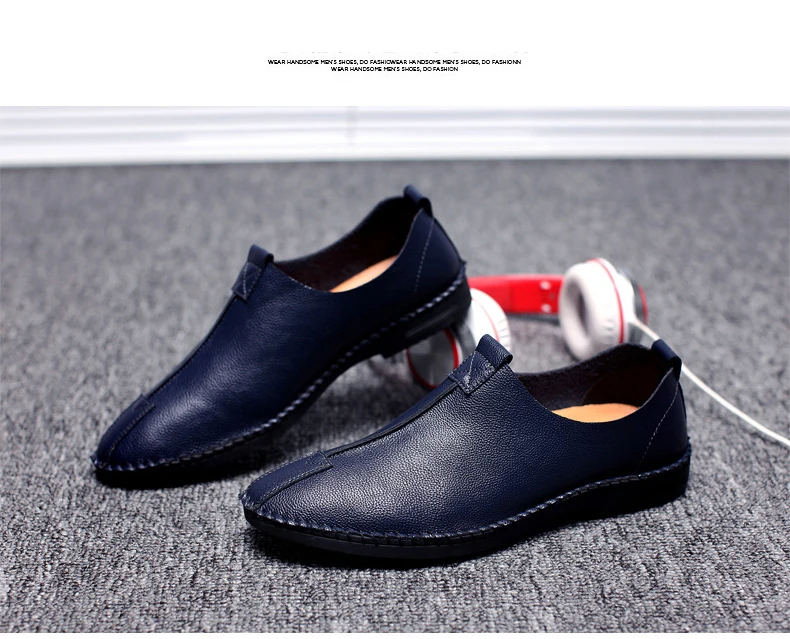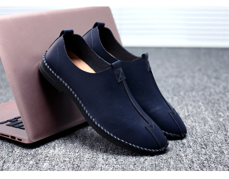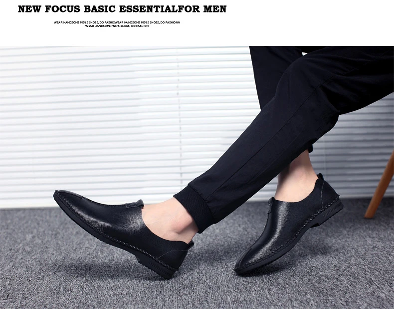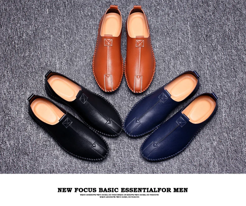 British Men Sewing Outdoor Shoes Flats Breathable Leather Walking Shoes Male Comfortable Non-Slip Shoes Black Brown New Footwear