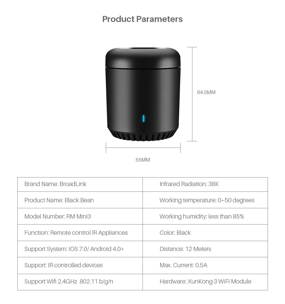 Three steps to connect APP, it is easy to control the temperature change. Support Apps for Android and IOS. Using Broadlink App, you can control your devices anywhere,anytime with wifi/4g network