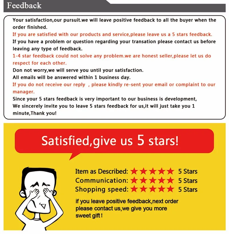 • If you did not receive the product within the guaranteed time( 45 days not including 2-5 day processing) you can request a refund or a reshipment.